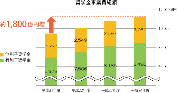 | 《ポイント》 | 奨学金の貸与人員は、年々増加しています。 |