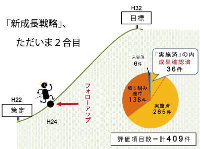 | ●「新成長戦略」のフォローアップ 平成22年6月に「『元気な日本』復活のシナリオ」として策定した「新成長戦略」について、フォローアップ結果をまとめました。