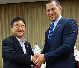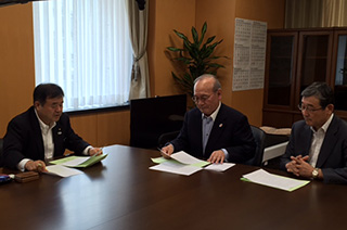 7月31日(金)、(公財)日本オリンピック委員会(JOC)の平岡専務理事らが遠藤大臣を訪問し、新しい国立競技場について要望を伝えるとともに、意見交換を行いました。