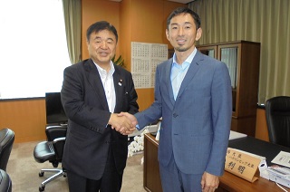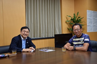 8月11日(火)、元サッカー全日本代表監督の岡田武史さんが遠藤大臣を訪問し、意見交換を行いました。