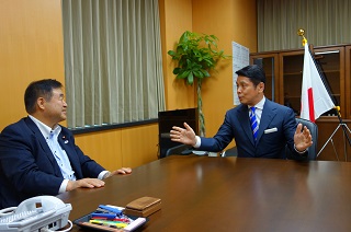 8月11日(火)、スポーツ評論家の玉木正之さんが遠藤大臣を訪問し、意見交換を行いました。
