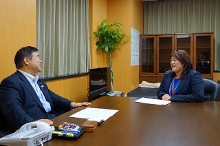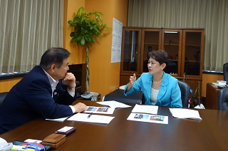 8月11日(火)、ジャーナリストの結城和香子さんが遠藤大臣を訪れ、意見交換を行いました。