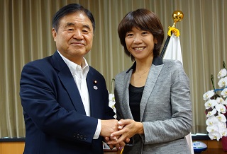 8月20日(木)、オリンピアンで社会学者でもある溝口紀子さんが遠藤大臣を訪ね、国立競技場のあり方について意見交換を行いました。
