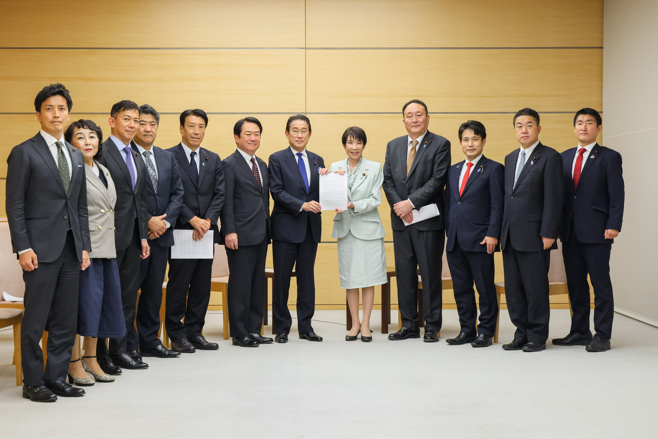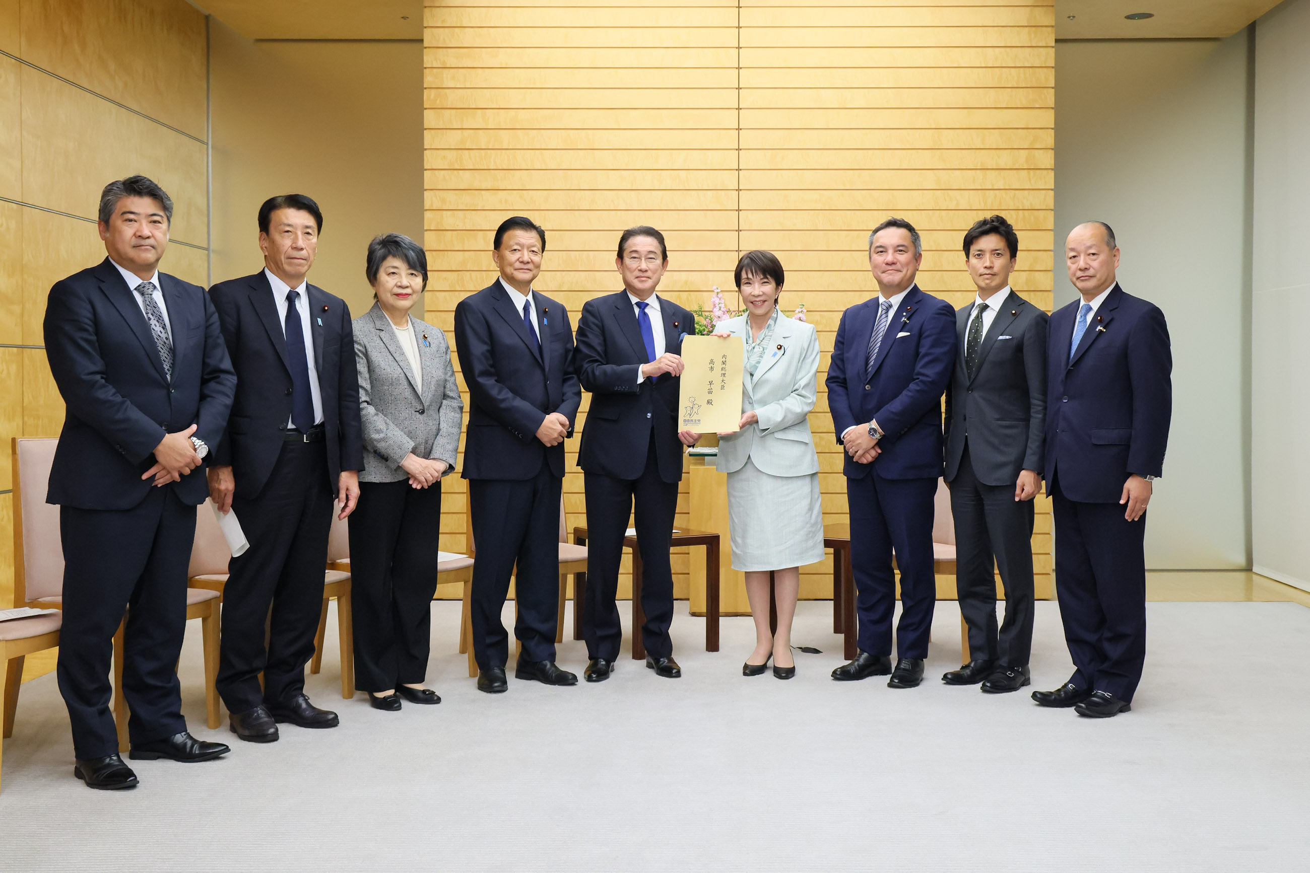 自由民主党・能登半島地震を踏まえた"被災者目線"での災害対応を実現する議員の会による提言手交