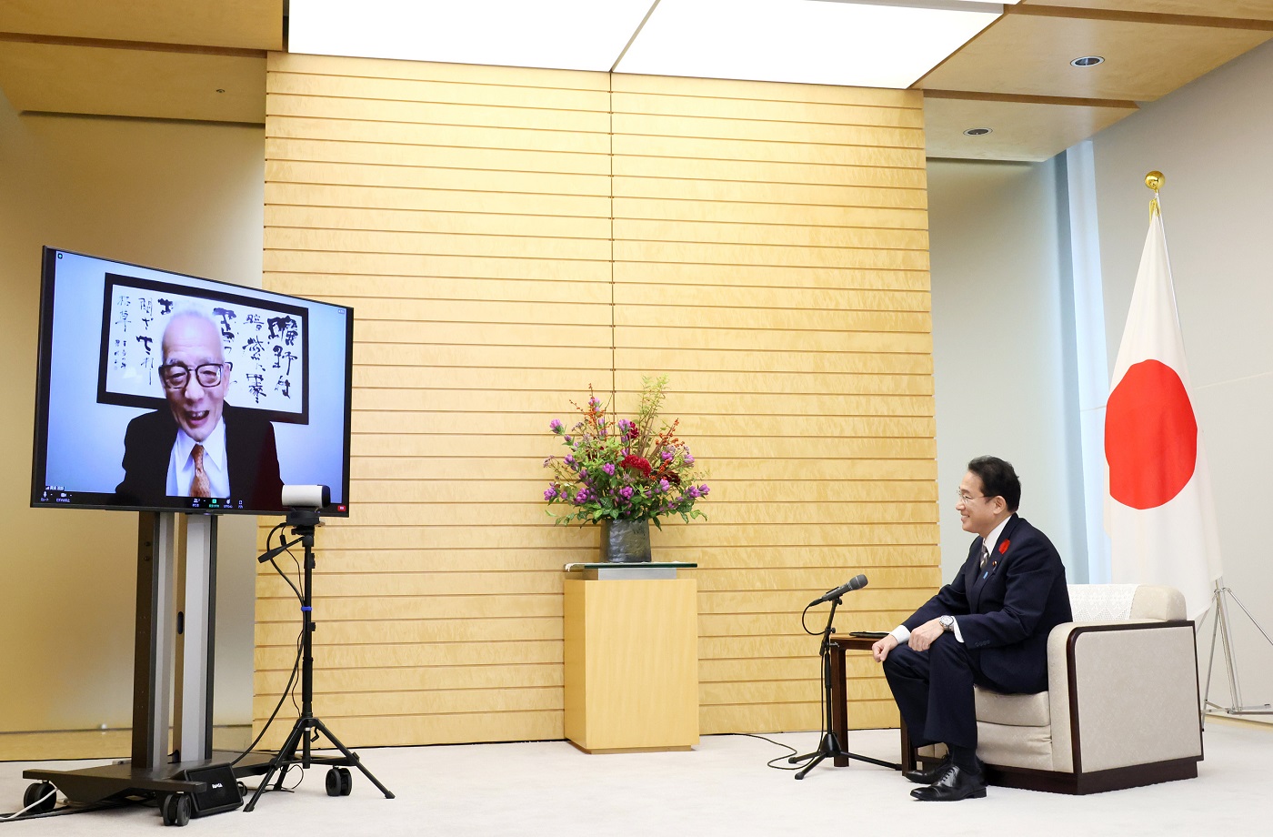 与普林斯顿大学高级研究员兼国立研究开发法人海洋研究开发机构研究员真锅淑郎的线上会面 2021年 10月 8日 (周五) 发推 岸田总理在总理大臣官邸通过线上方式与荣获诺贝尔物理学奖的普林斯顿大学高级研究员兼国立研究开发法人海洋研究开发机构研究员真锅淑郎会面,向其表示了祝贺。 更多