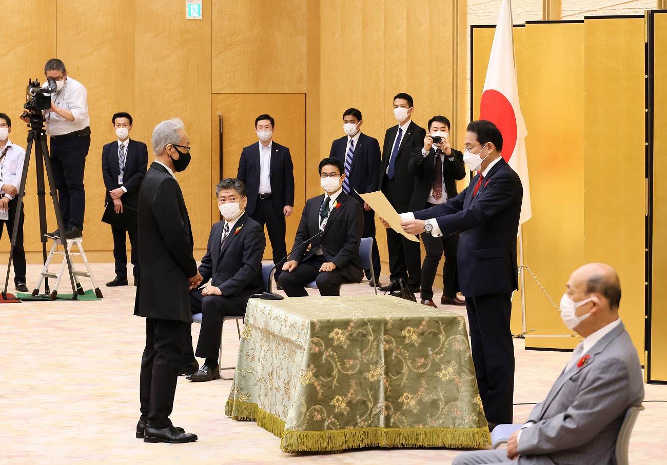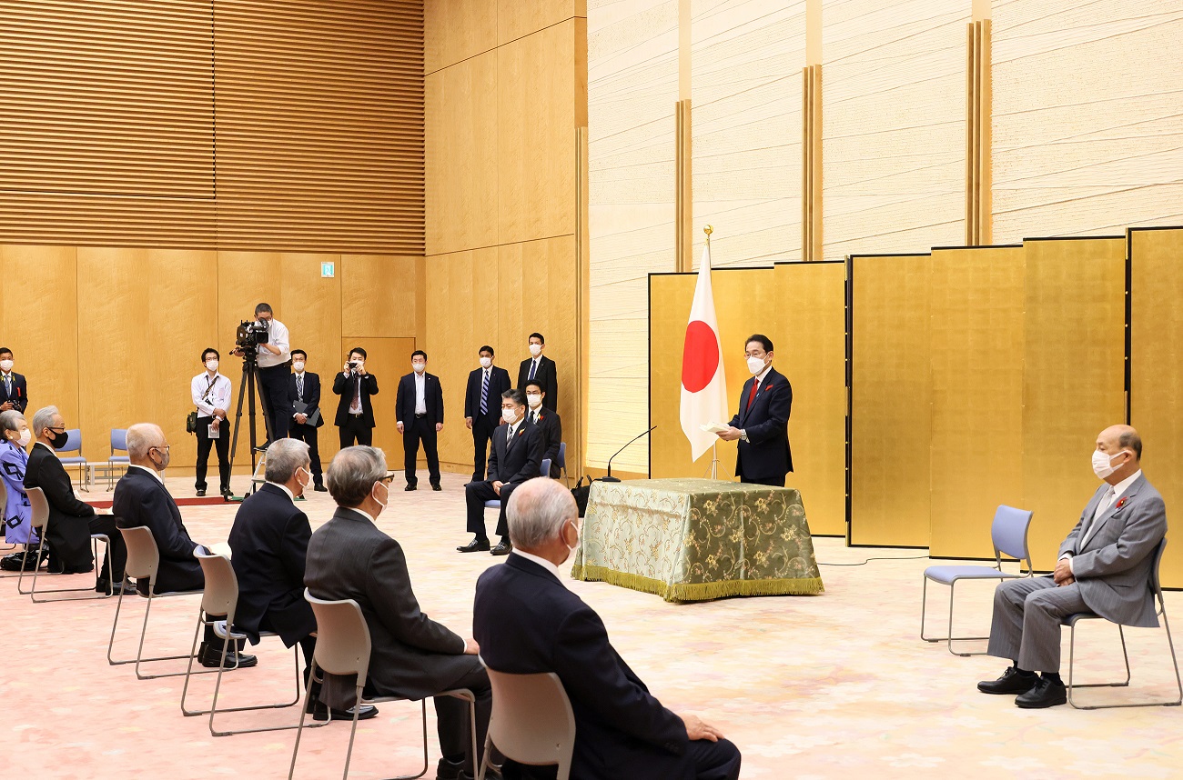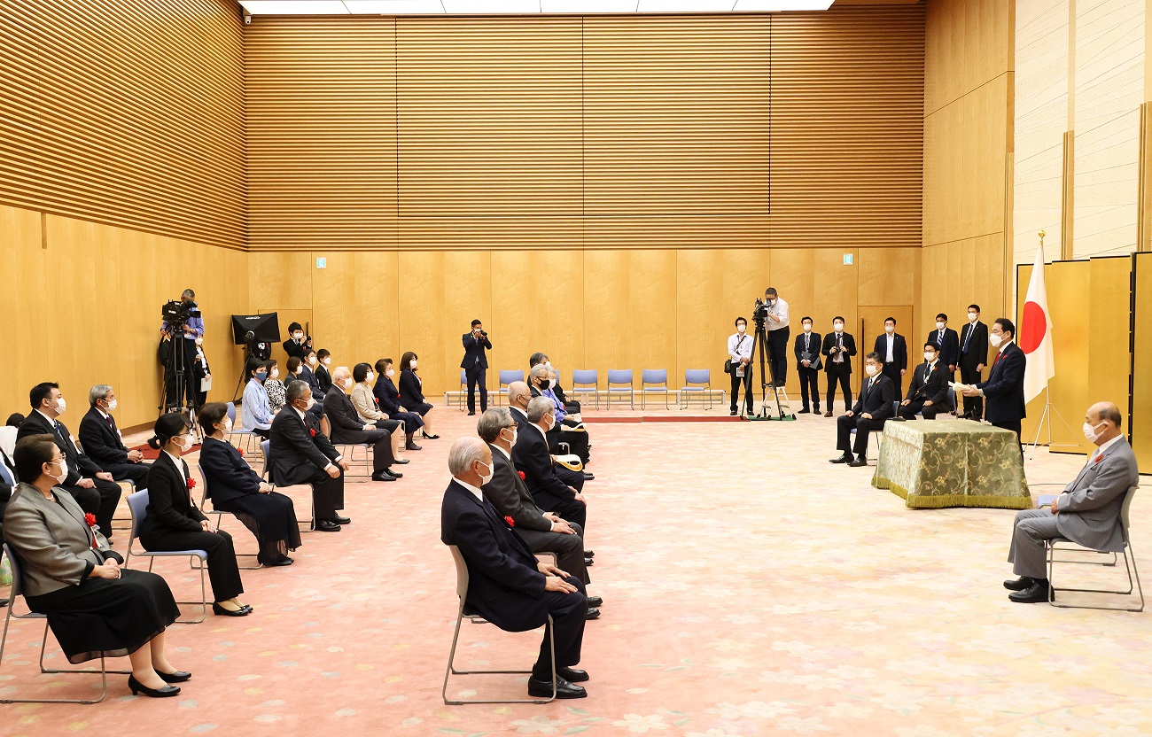 岸田总理在总理大臣官邸举行了营造安全放心城市相关功劳者的表彰仪式。
