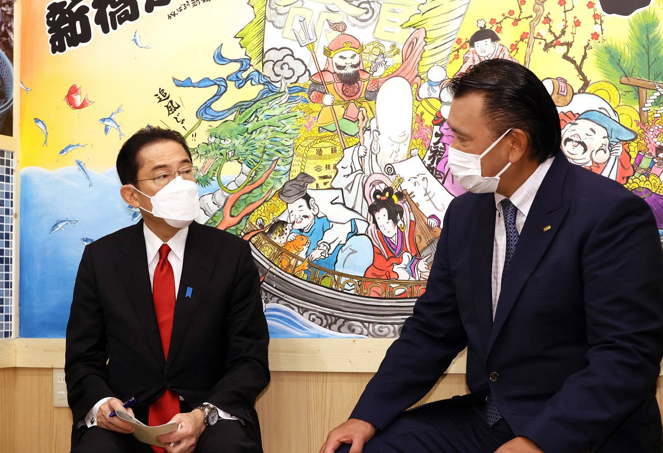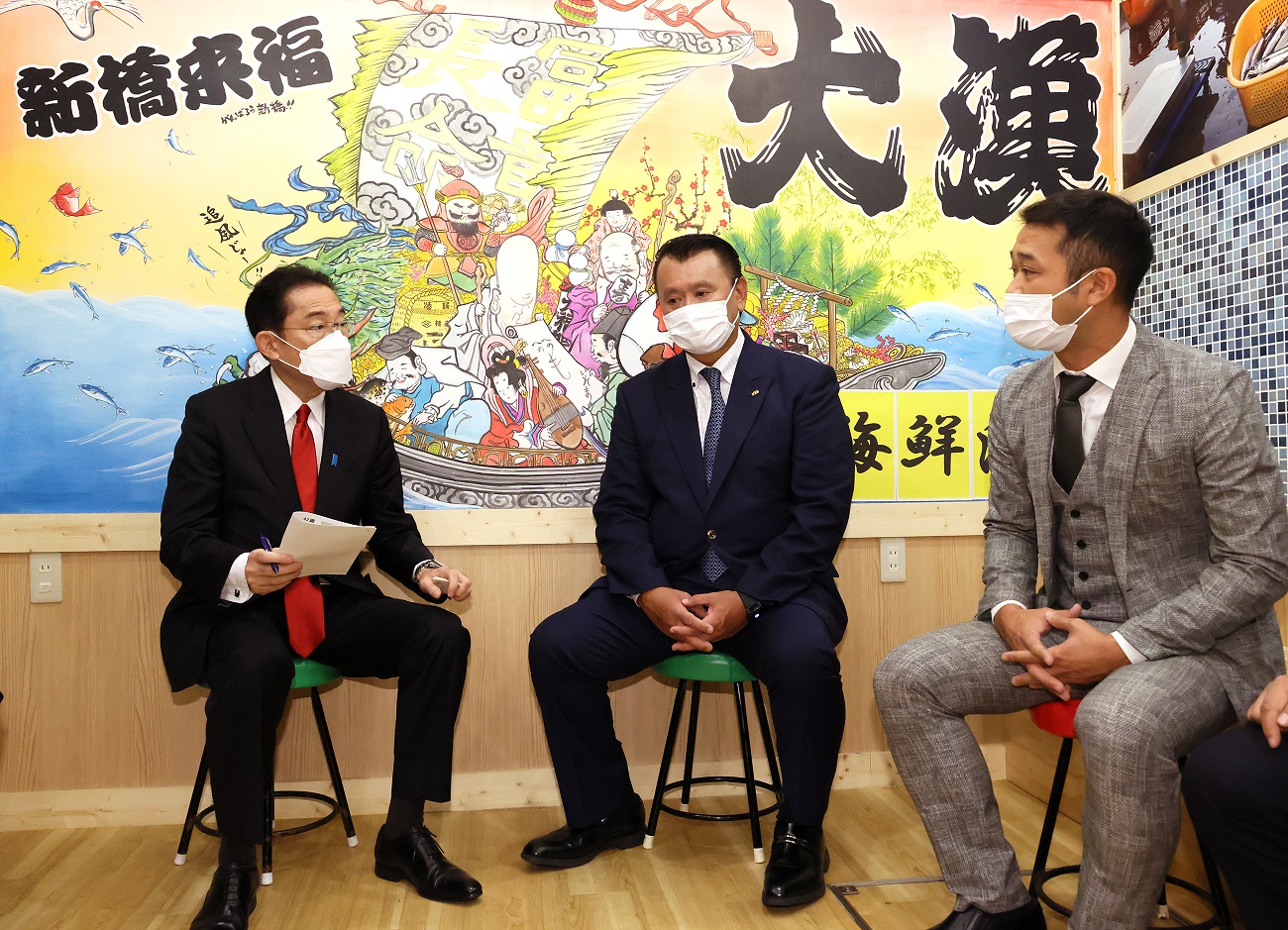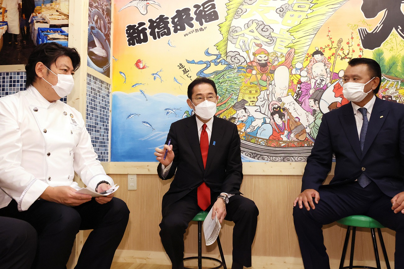 岸田总理在东京都内与餐饮店经营者举行了交流意见的座谈会。