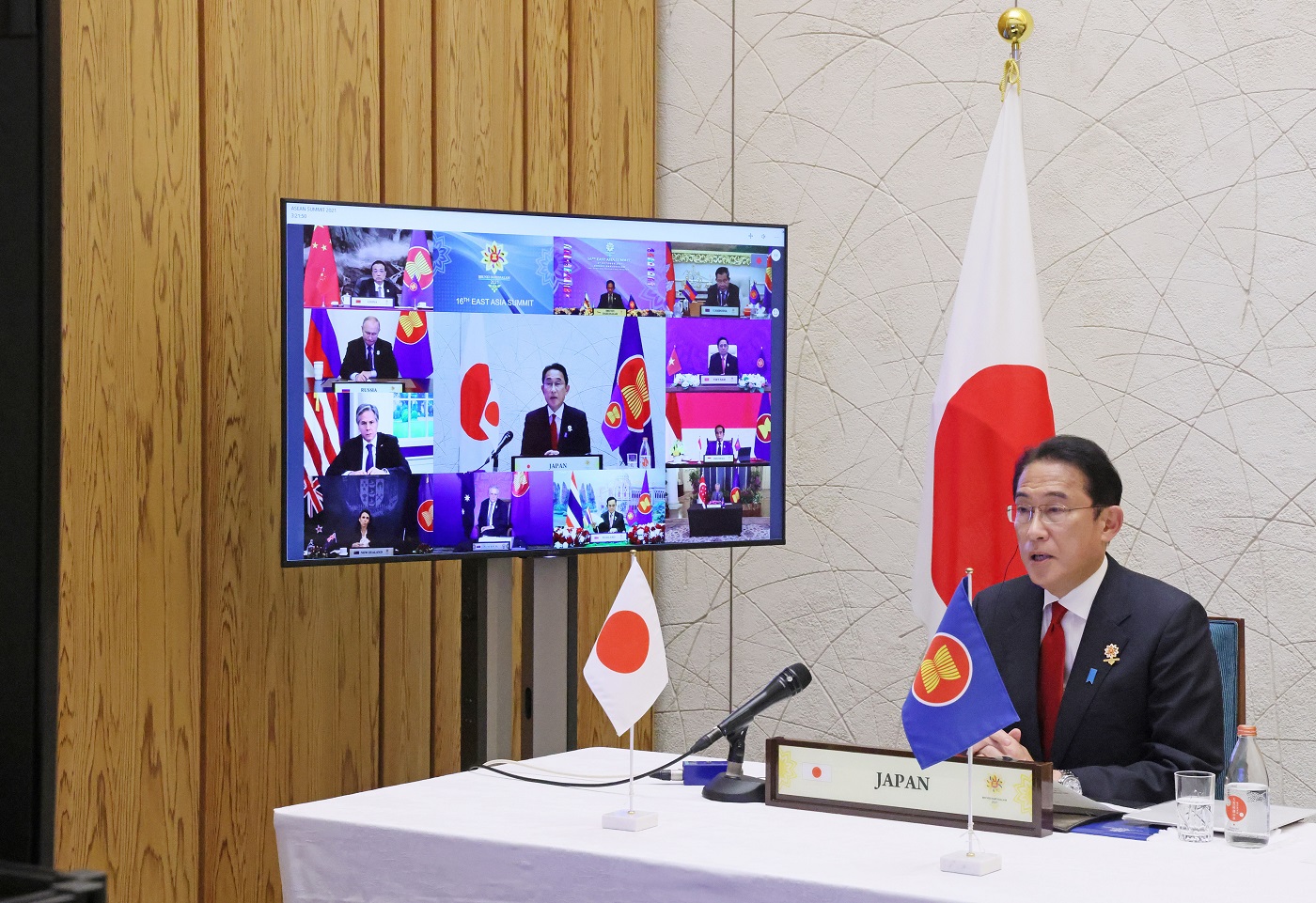 岸田总理在总理大臣官邸出席了以线上方式举行的东亚首脑会议(EAS)。