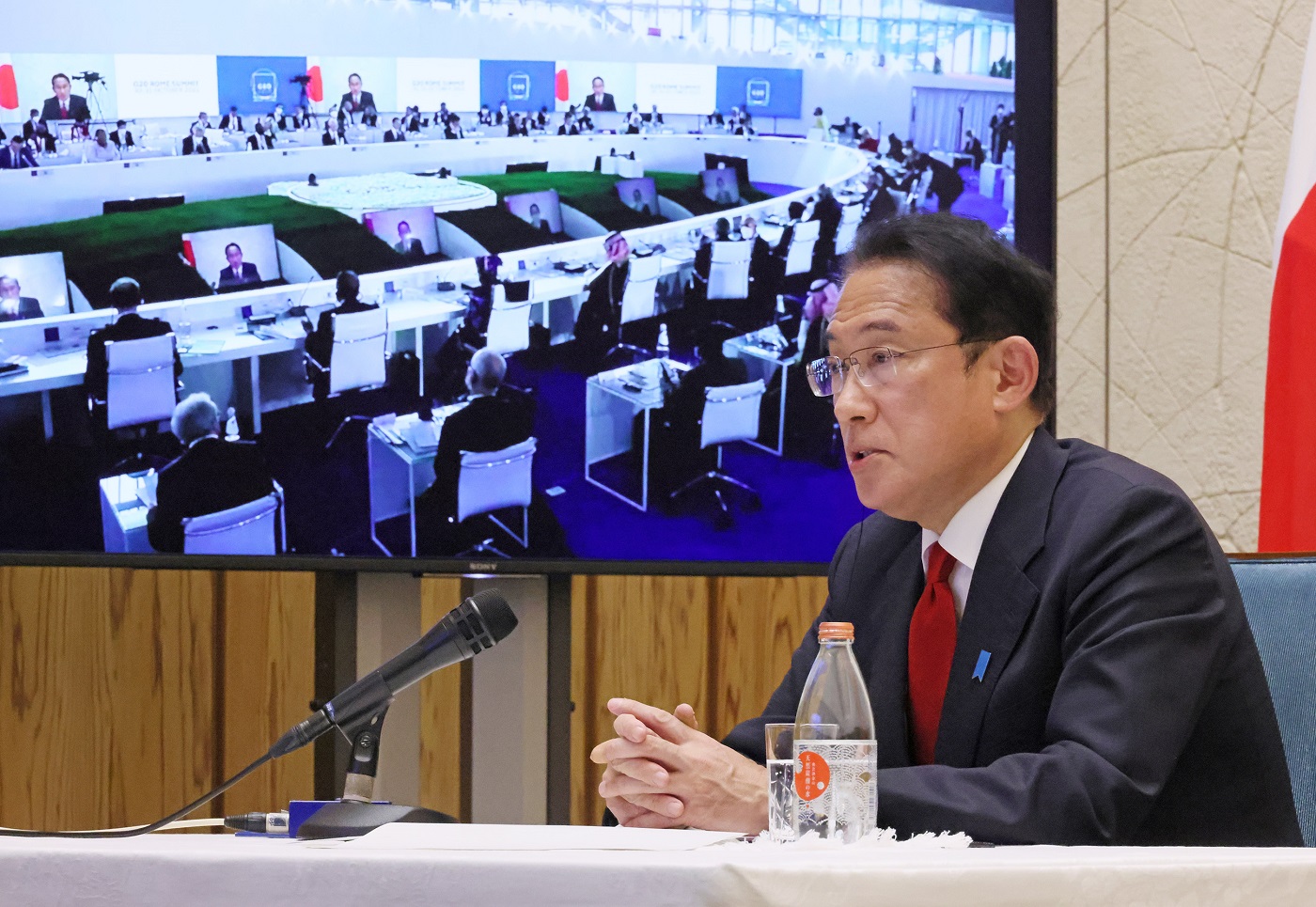 岸田总理在总理大臣官邸以线上方式出席了在意大利共和国举行的G20罗马峰会。