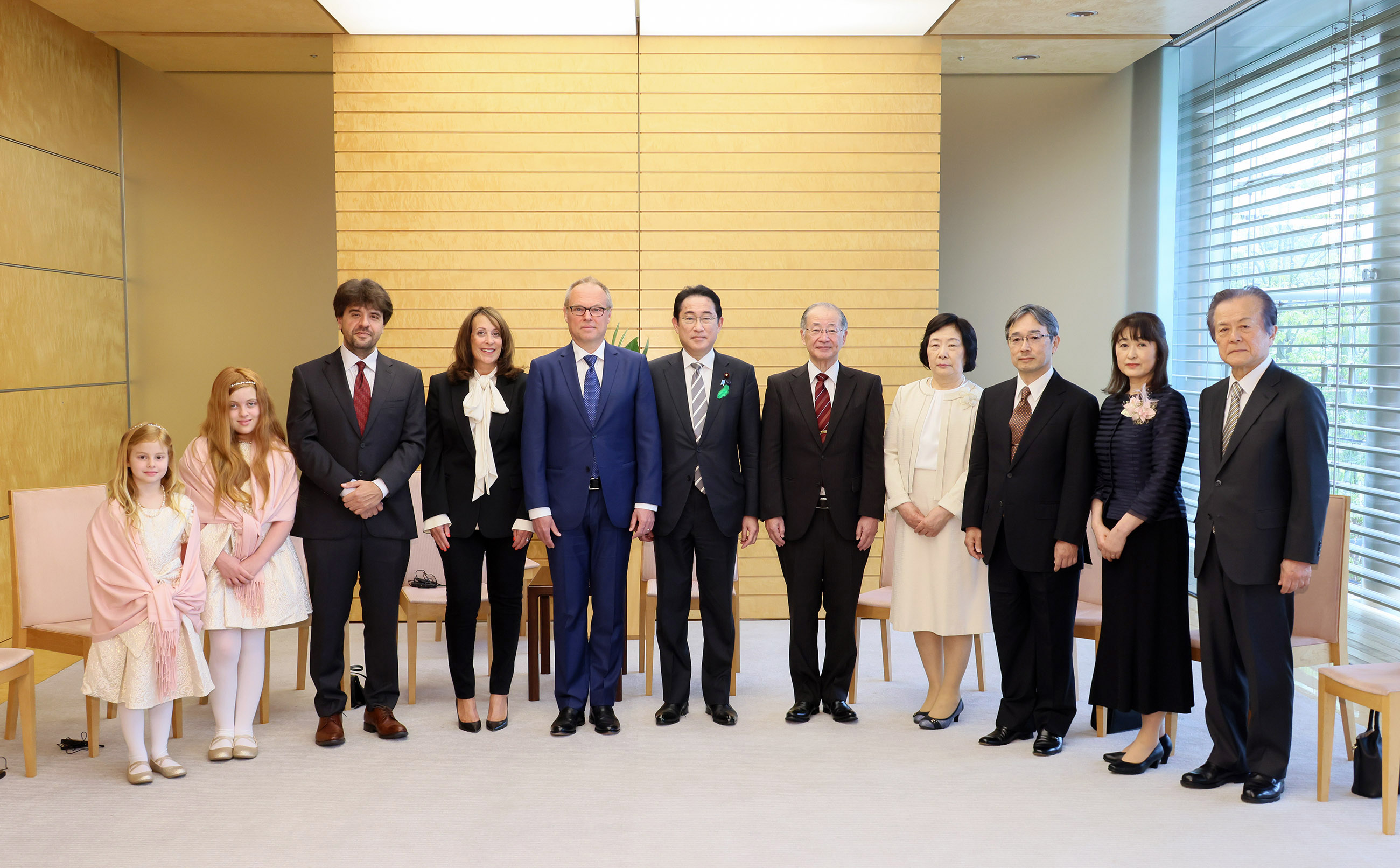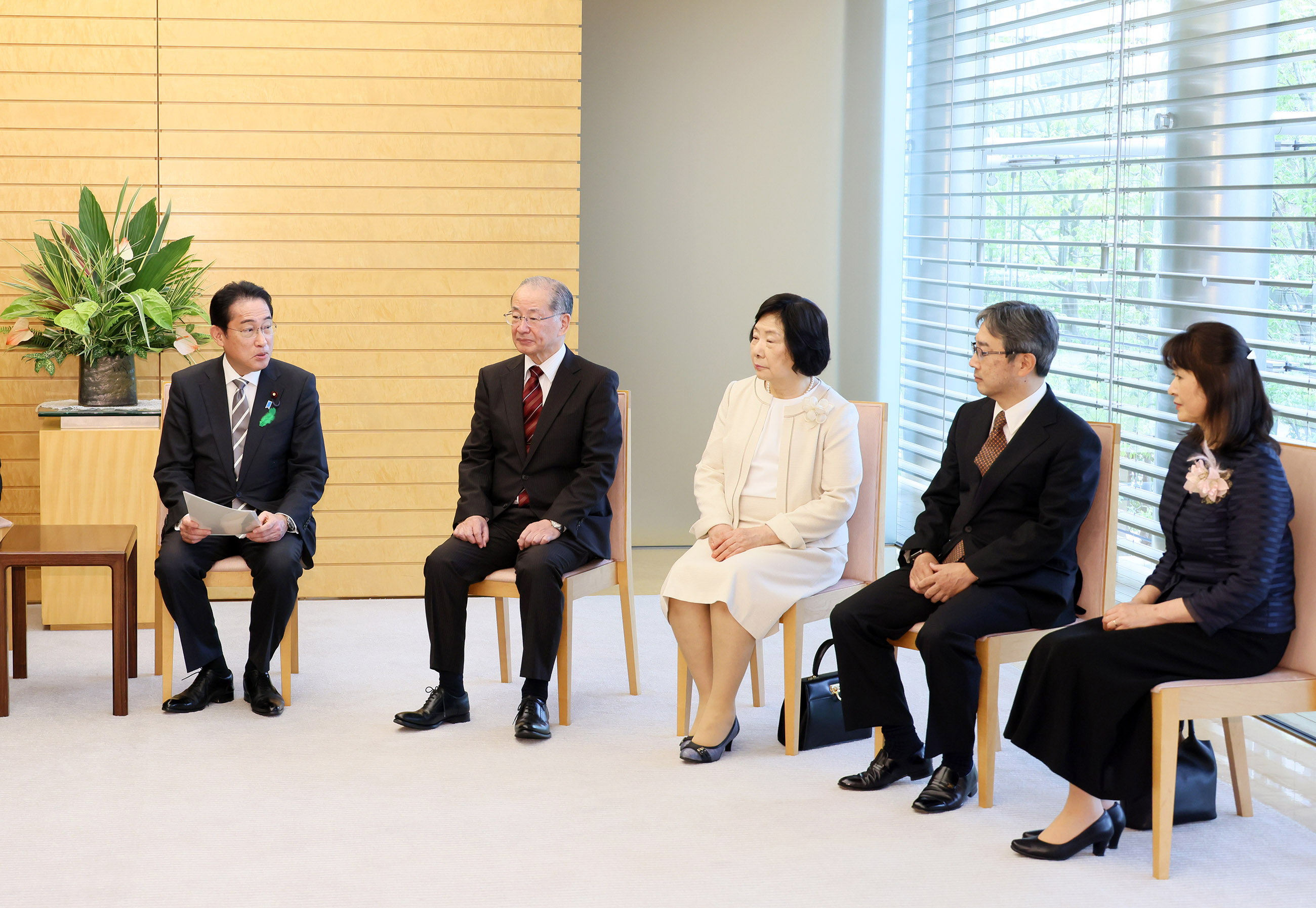 2023年4月14日,岸田首相在官邸接受了日本国际奖获奖者的拜访。