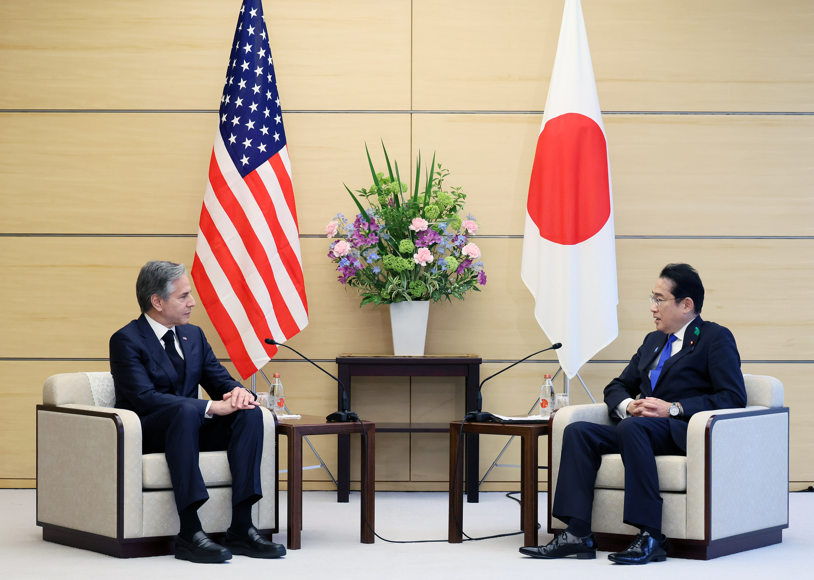 2023年4月18日,岸田首相在官邸接受了美利坚合众国国务卿安东尼·布林肯(Honorable Antony Blinken, Secretary of State of the United States of America)的拜会。