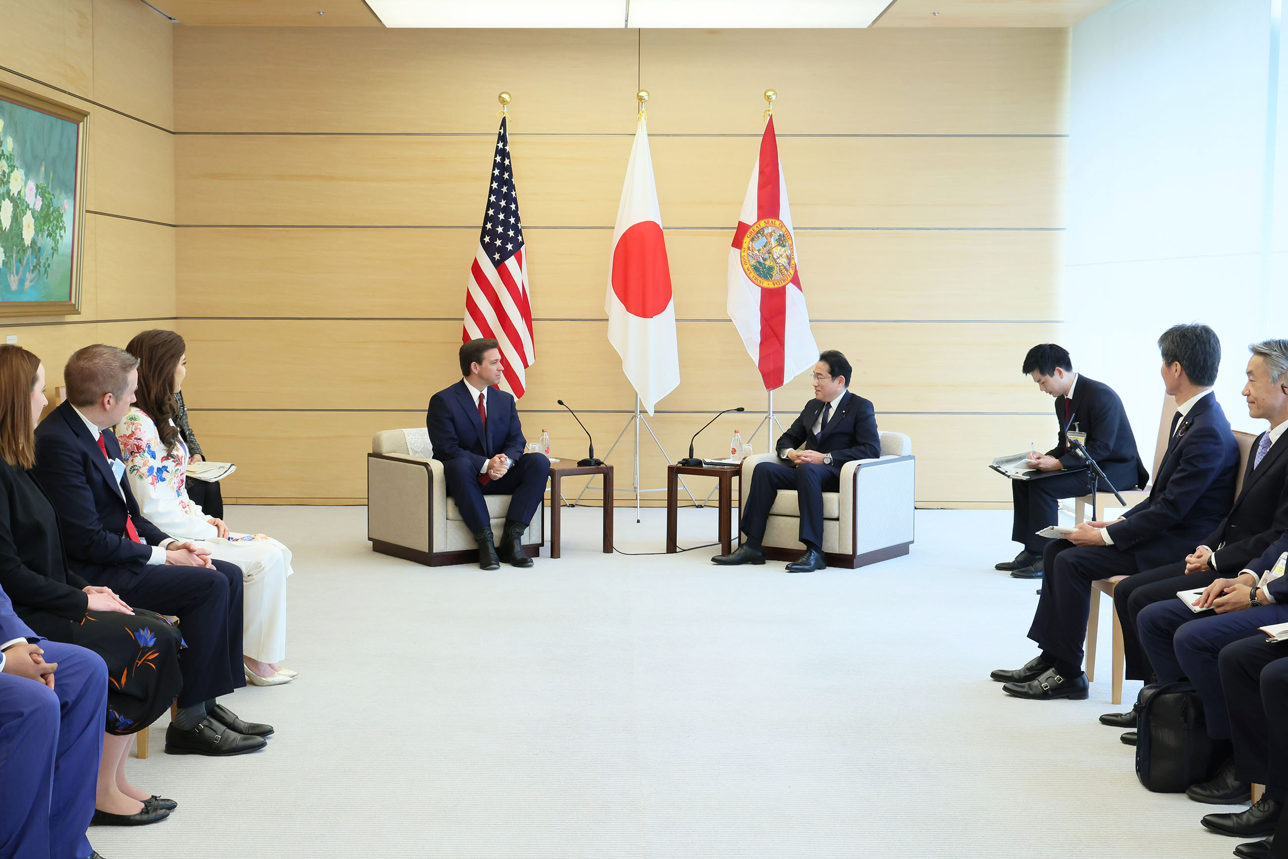 #外交 会见美国佛罗里达州州长德桑蒂斯 2023年 4月 24日 (周一) 发推 (暂译) 2023年4月24日,岸田首相在官邸接受了美国佛罗里达州州长罗恩·德桑蒂斯(Ron DeSantis)的拜会。 更多