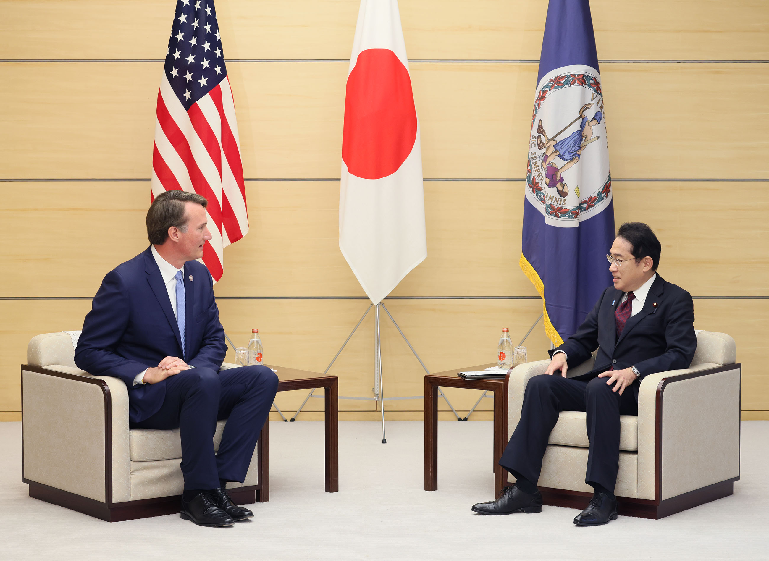 2023年4月27日,岸田首相在官邸接受了美国弗吉尼亚州州长格伦・杨金(The Honorable Glenn Youngkin, Governor of the State of Virginia, United States of America)的拜会。