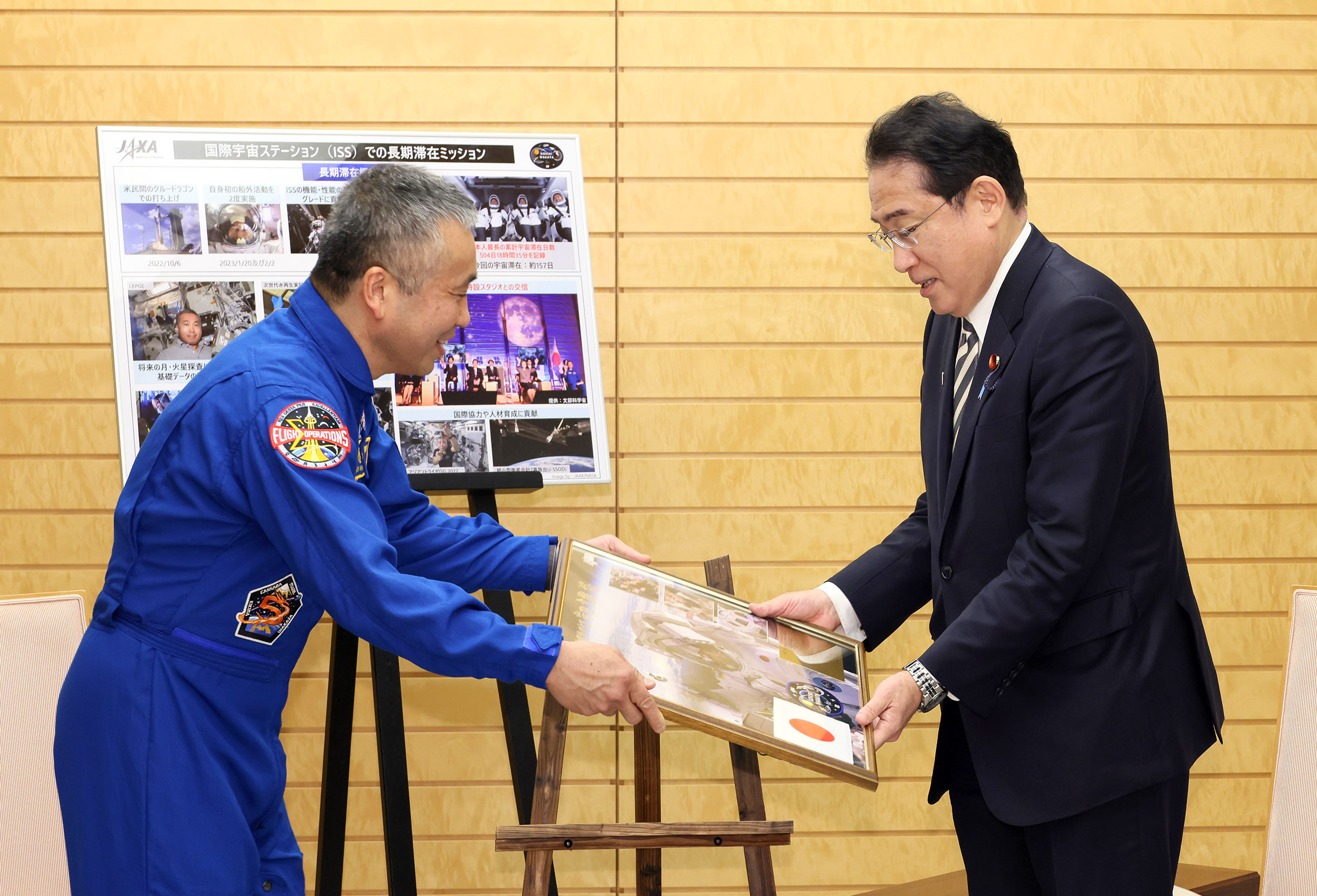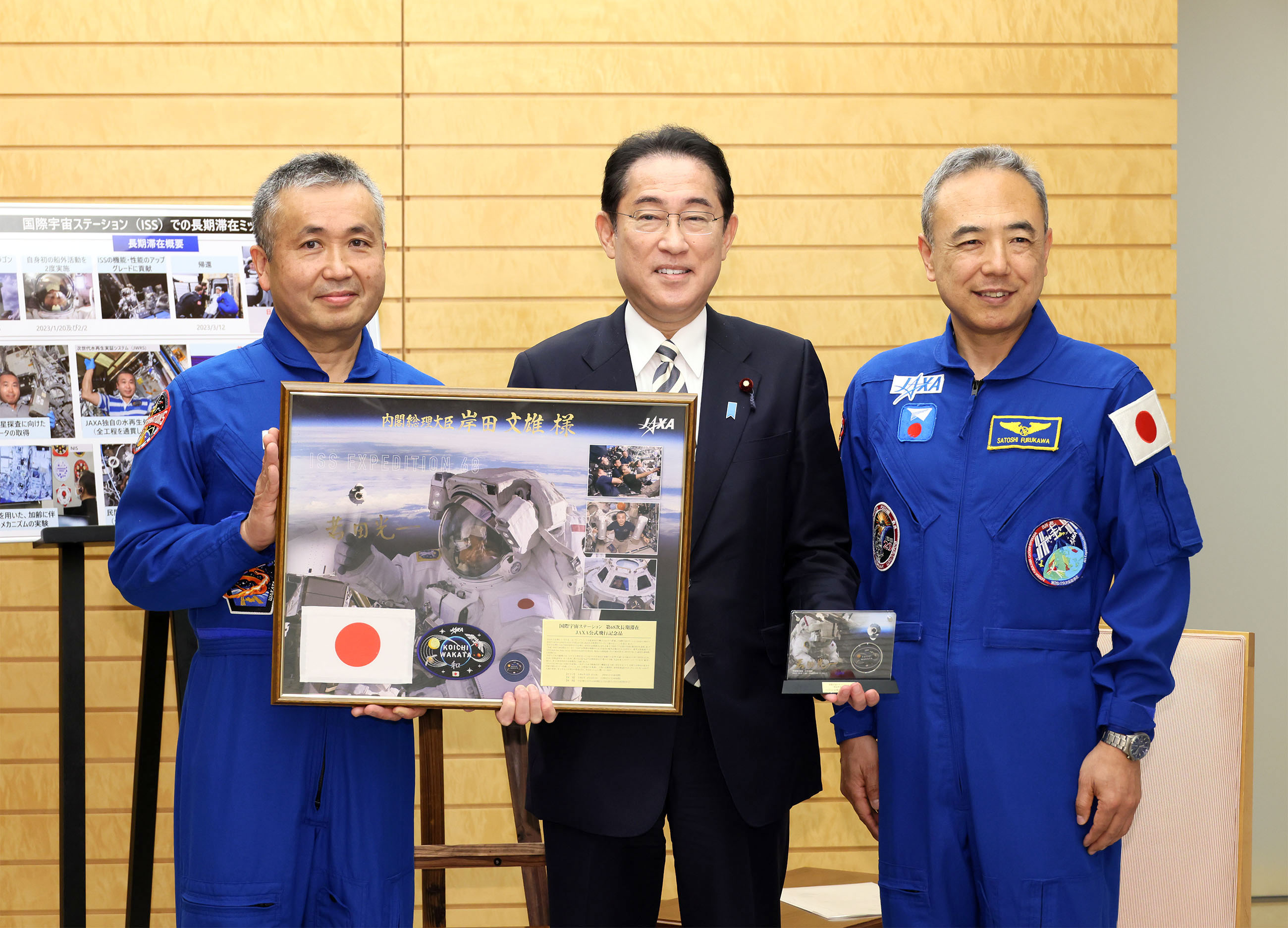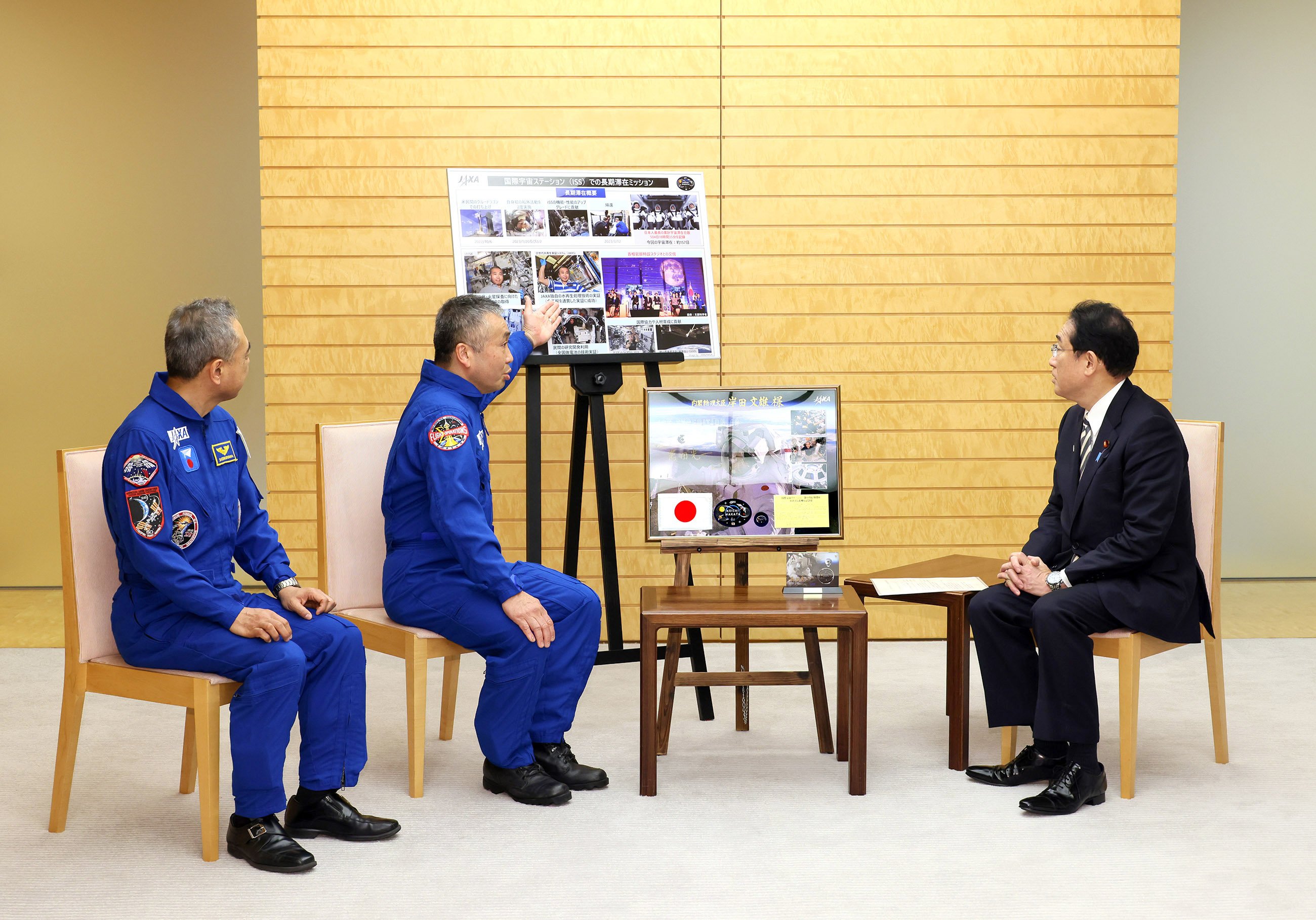 2023年5月17日,岸田首相在首相官邸接受了宇航员若田光一与古川聪的拜访。