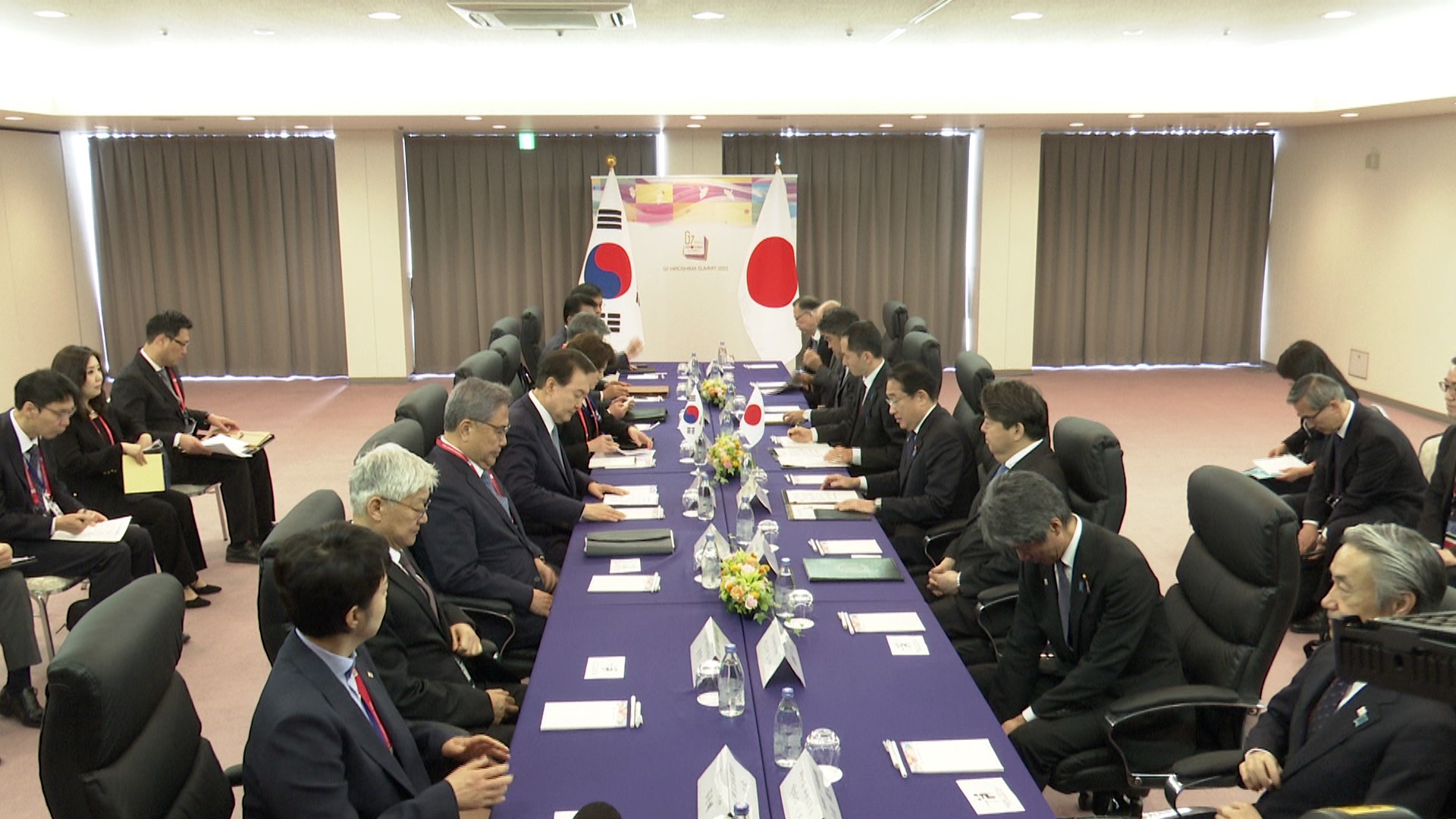 #外交 #七国集团 #日韩首脑会谈 G7七国集团广岛峰会 日韩首脑会谈 2023年 5月 21日 (周日) 发推 (暂译) 2023年5月21日,正在访问广岛县的岸田首相与大韩民国总统尹锡悦(H.E. Mr. YOON Suk Yeol)一同,向韩国人原子弹爆炸遇难者慰灵碑献花。随后,岸田首相与尹总统举行了首脑会谈。 更多