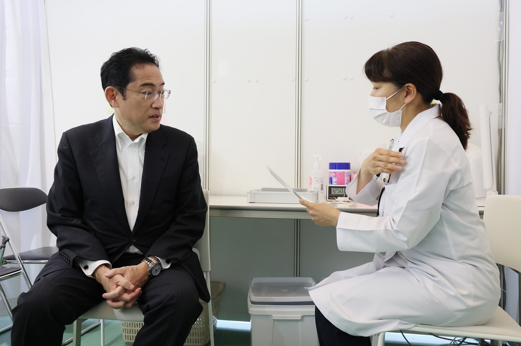 2023年6月24日,岸田首相在东京都厅疫苗接种会场接种了针对奥密克戎毒株的疫苗。(第6次新冠疫苗接种)