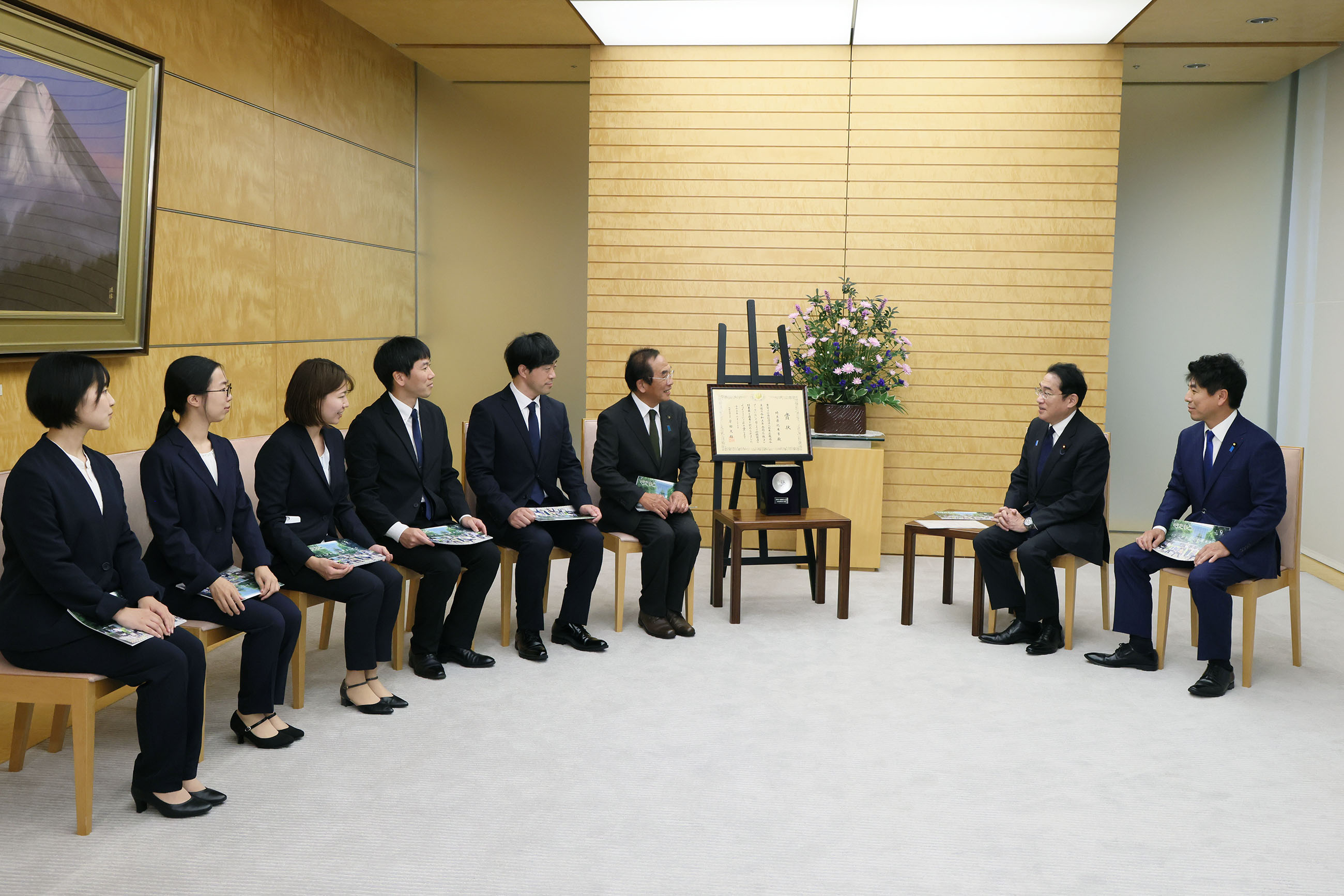 2023年6月29日,岸田首相在官邸接受了北本市市长三宫幸雄的拜访。