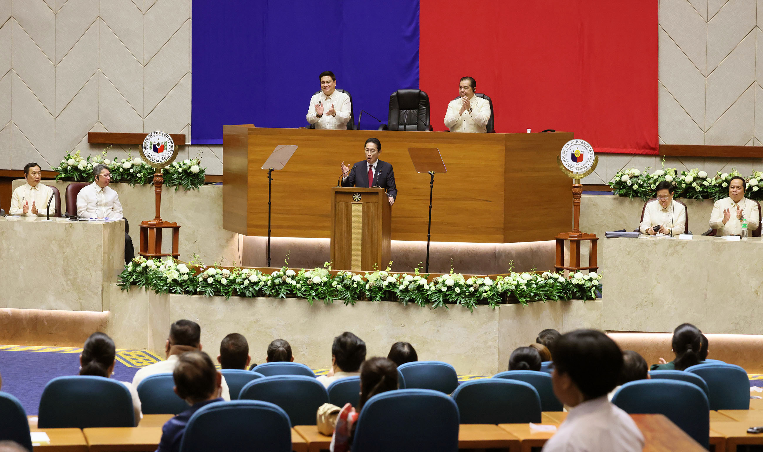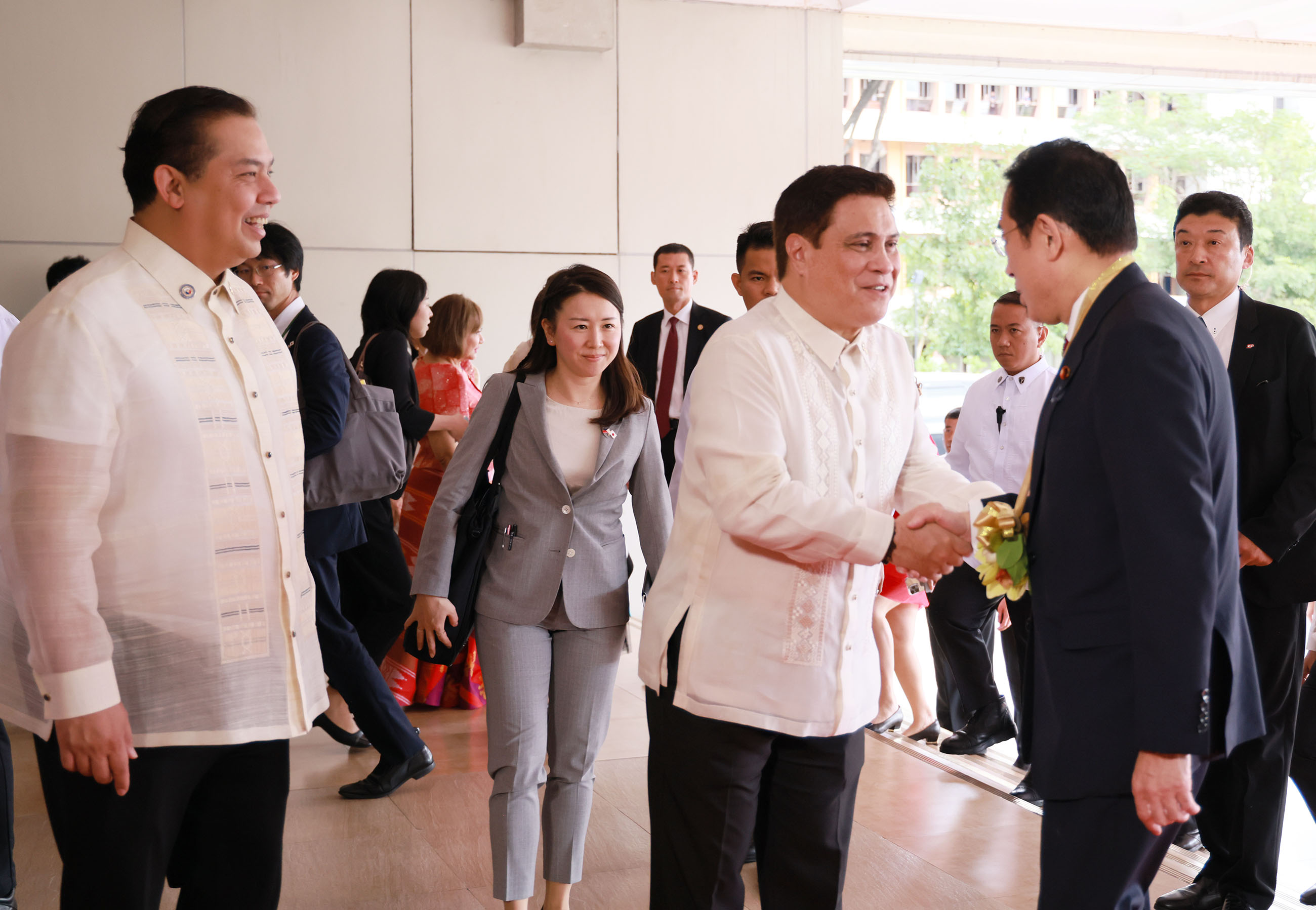 2023年11月4日(当地时间),正在访问菲律宾共和国马尼拉的岸田首相,会见了参议院议长米格尔-祖比利(Hon. Juan Miguel F. Zubiri, President of the Senate of the Republic of the Philippines)和众议院议长马丁-罗穆阿尔德斯(Hon. Romualdez Ferdinand Martin G, House Speaker),并在菲律宾共和国参众两院联席会议上发表了演讲。