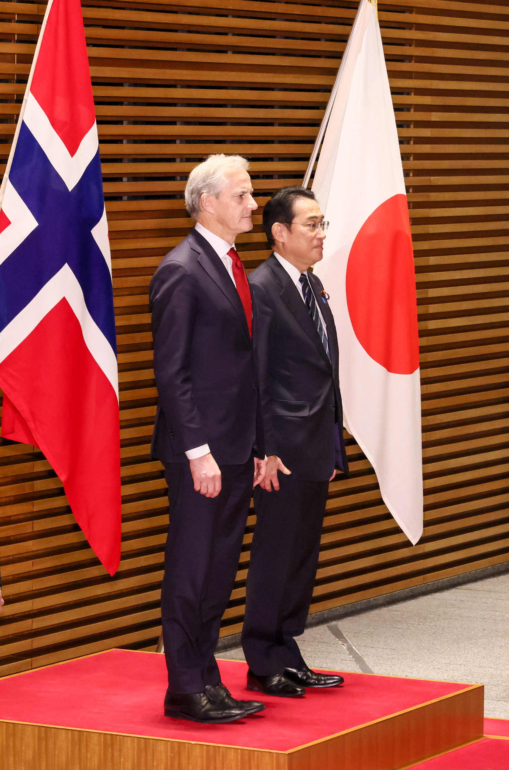 #外交安全保障 日本挪威首脑会谈 2023年 12月 7日 (周四) 发推 (暂译) 2023 年 12 月 7 日,岸田首相与挪威王国首相约纳斯·加尔·斯特勒(H.E. Mr. Jonas Gahr STØRE, Prime Minister of the Kingdom of Norway)在首相官邸举行了首脑会谈。在迎宾仪式后,两国首脑举行了会谈,随后举行了联合记者招待会。 更多