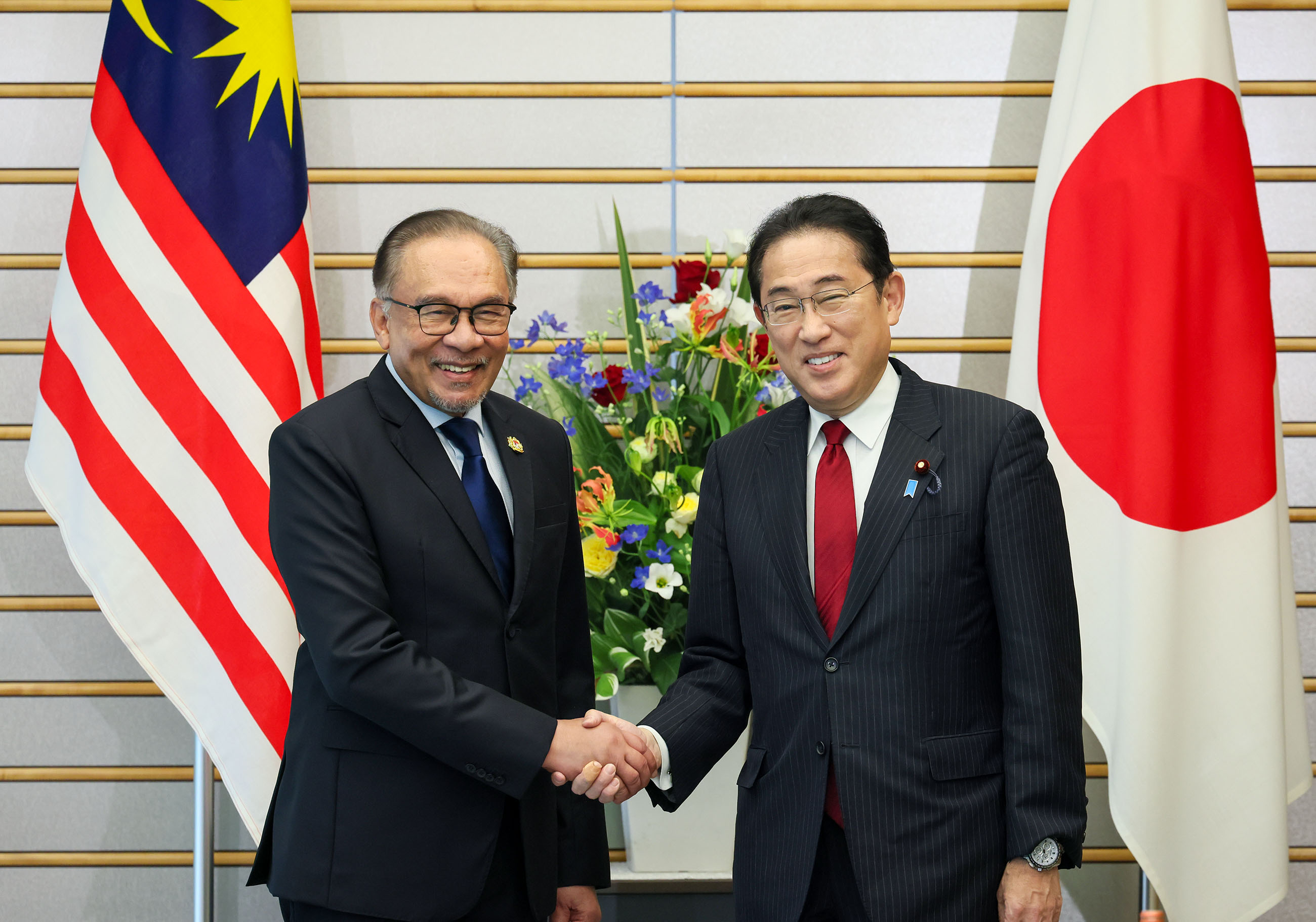 #外交安全保障 举行日本马来西亚首脑会谈 2024年 5月 23日 (周四) 发推 日本马来西亚首脑会谈 2024年5月23日,岸田首相在首相官邸与马来西亚总理安瓦尔·易卜拉欣(Y.A.B. Dato' Seri Anwar bin Ibrahim, Prime Minister of Malaysia)举行了首脑会谈。 (中文为暂译仅供参考,原文为日文) 更多
