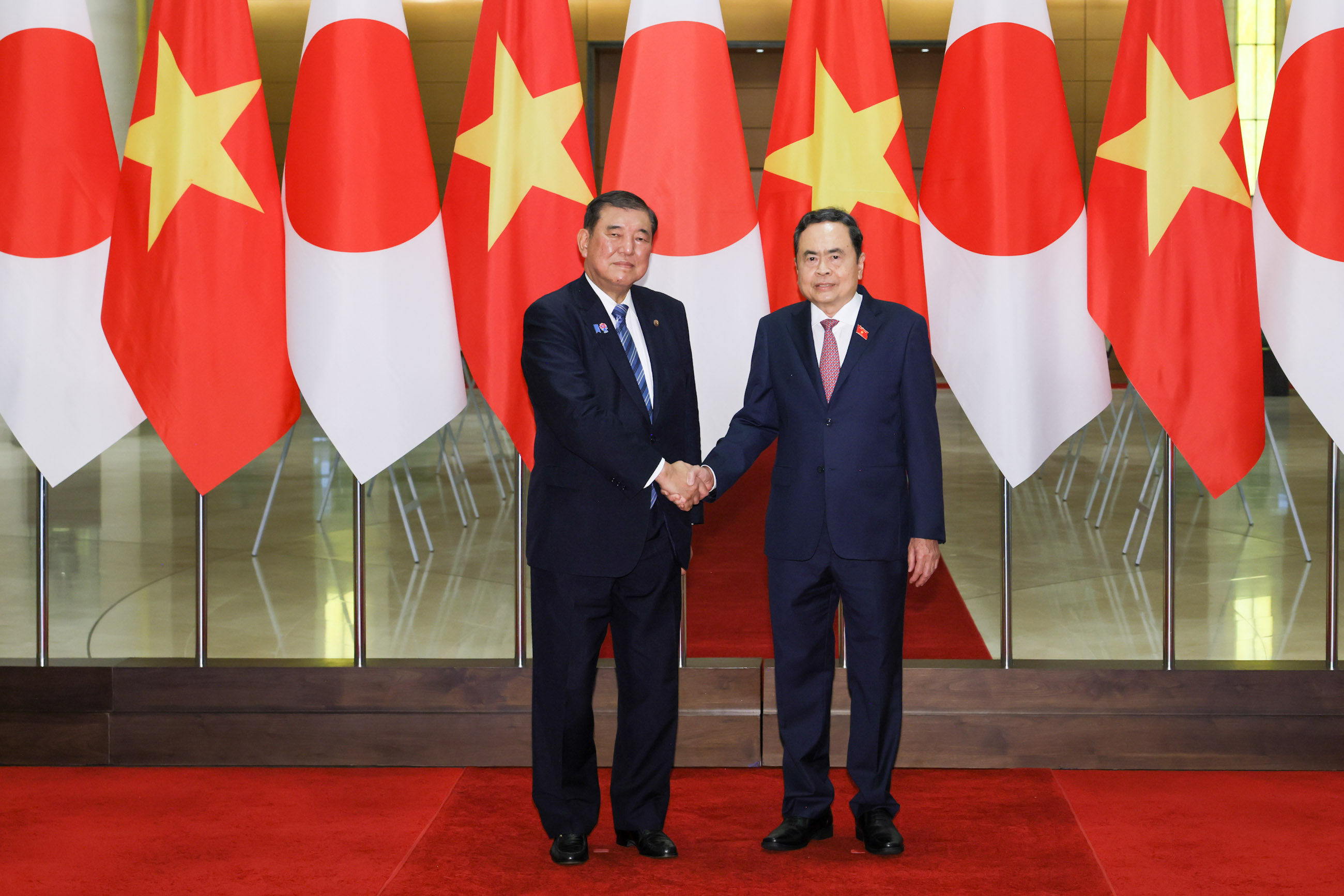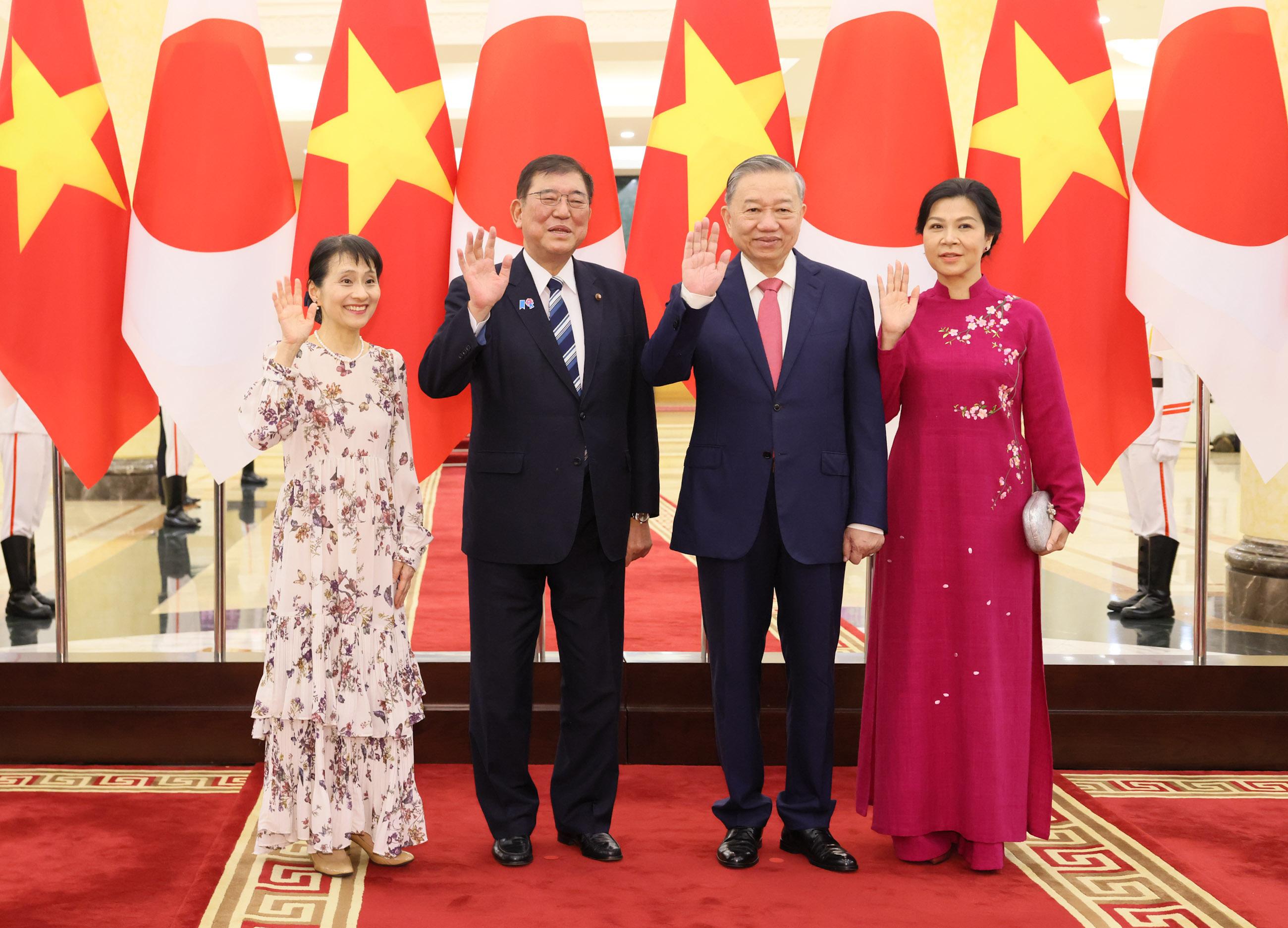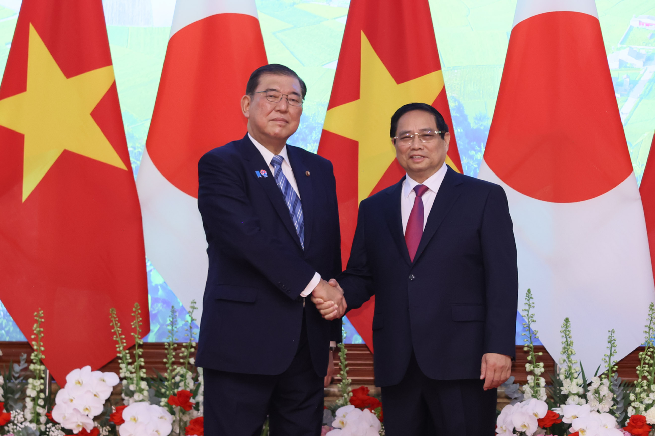 2025年4月28日(当地时间),正在访问越南社会主义共和国河内的石破首相,拜谒了英雄烈士纪念碑和胡志明主席陵墓,并分别进行了献花。在出席欢迎仪式后,首相与总理范明政(Pham Minh Chinh)先后举行了小规模会议以及全体会议的首脑会谈,接着两国首脑出席文件交换仪式和联合记者发布会。随后,首相与国家主席梁强(Luong Cuong)举行了会谈。