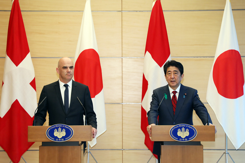 安倍总理在总理大臣官邸与瑞士联邦主席兼内政部长阿兰·贝尔塞举行了首脑会谈等。