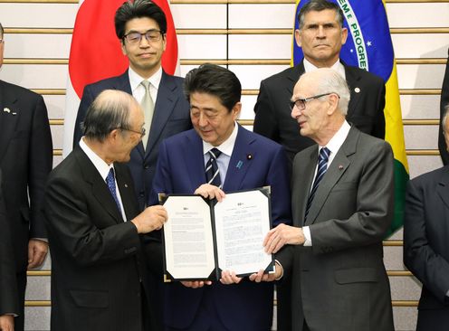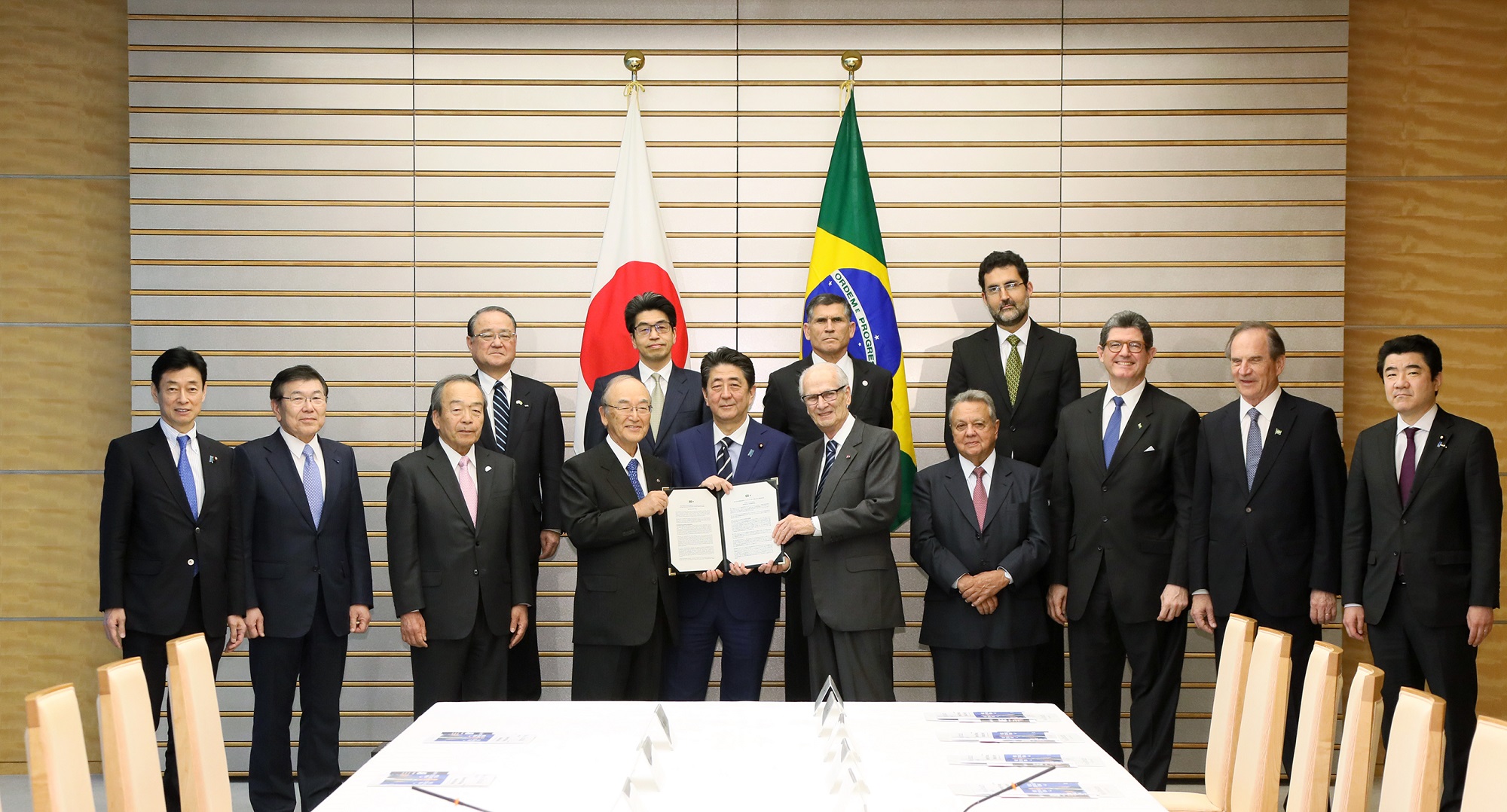 安倍总理在总理大臣官邸接受了日本・巴西战略经济伙伴关系贤人会议成员的拜会。
