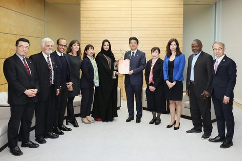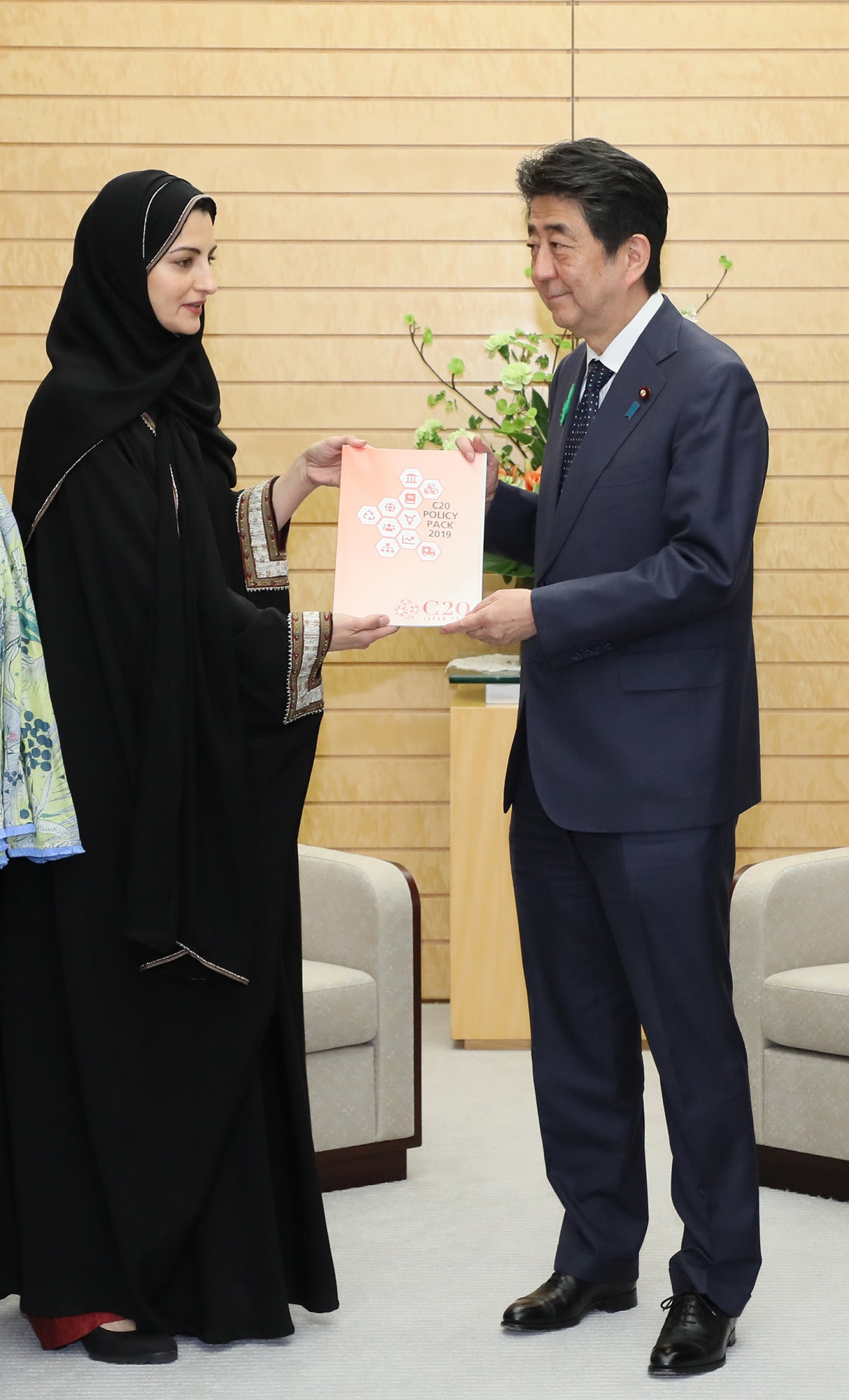 安倍总理在总理大臣官邸接受了二十国集团民间社会(C20)会议代表的拜会。
