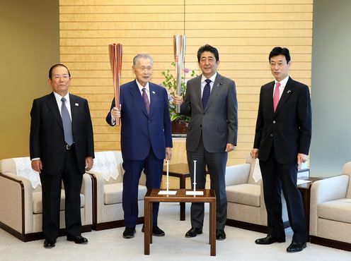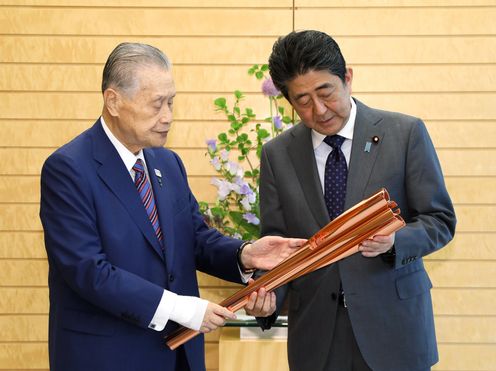 安倍总理在总理大臣官邸接受了东京奥林匹克运动会・残疾人奥林匹克运动会组织委员会主席森喜朗等的拜访。