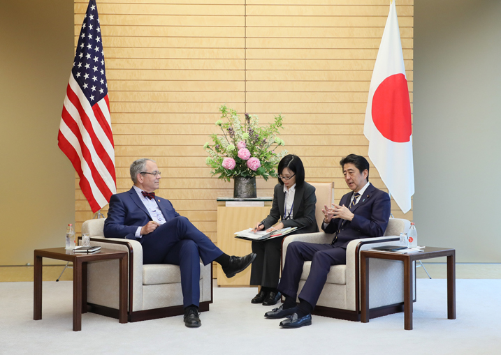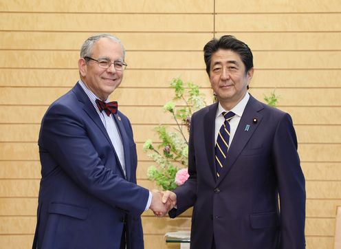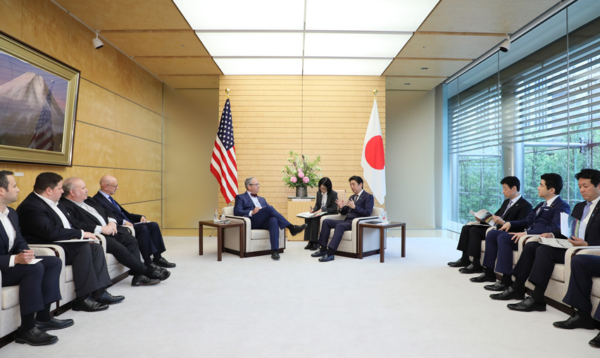 安倍总理在总理大臣官邸接受了圣约之子会会长查尔斯・考夫曼的拜会。