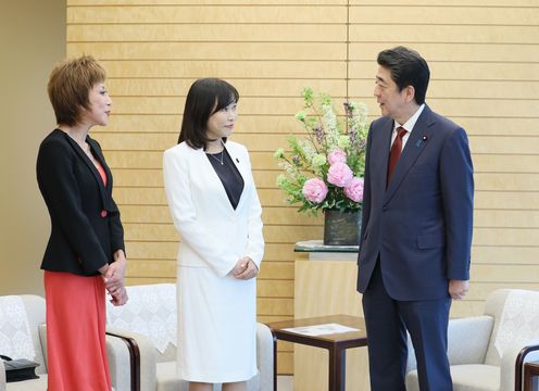 安倍总理在总理大臣官邸接受了二十国集团妇女会议(W20)相关人员的拜访。