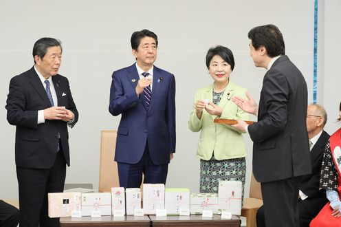 首页 > 总理动向 > 2019年 5月 > 自由民主党茶业振兴议员联盟等的新茶赠送仪式