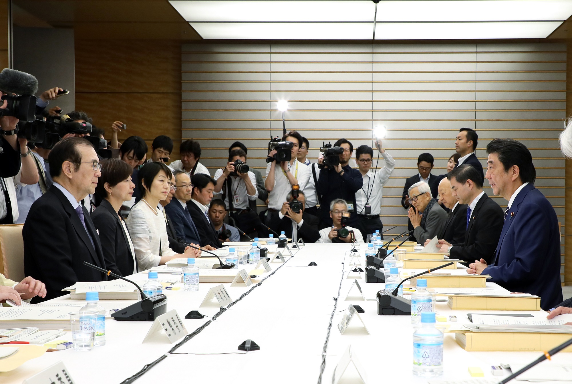 安倍总理在总理大臣官邸召开了第45次教育再生实行会议。