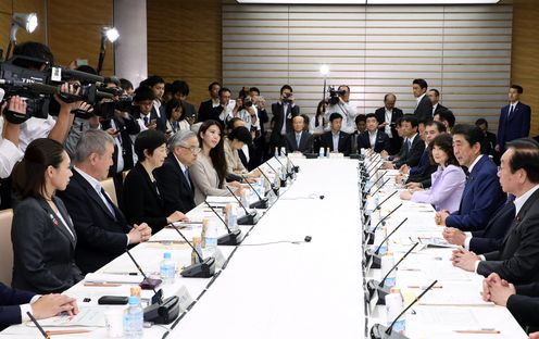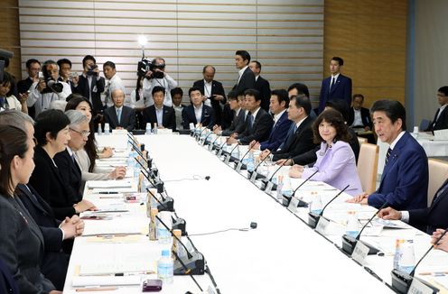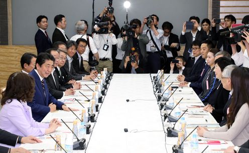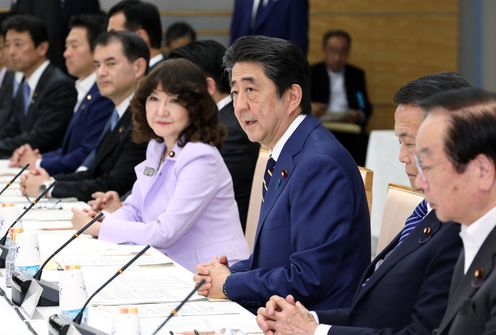 安倍总理在总理大臣官邸召开了第18次城镇・居民・工作创生会议。