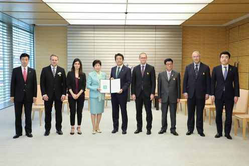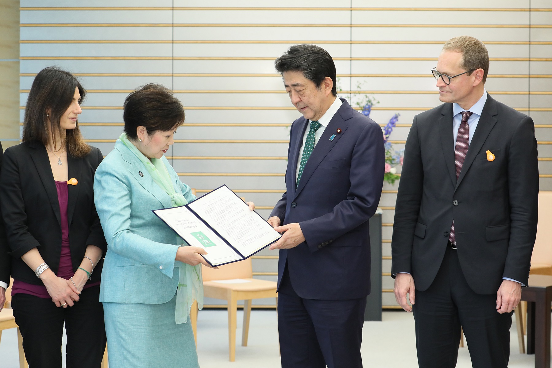 安倍总理在总理大臣官邸接受了二十国集团城市会议(U20)代表的拜会。
