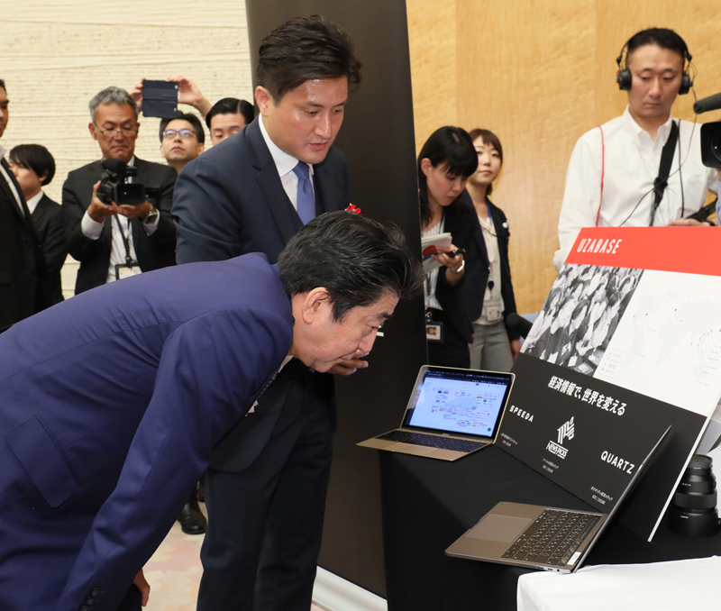 安倍总理在总理大臣官邸出席了第5届日本新创大奖(Nippon Venture Awards)表彰仪式。