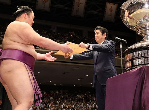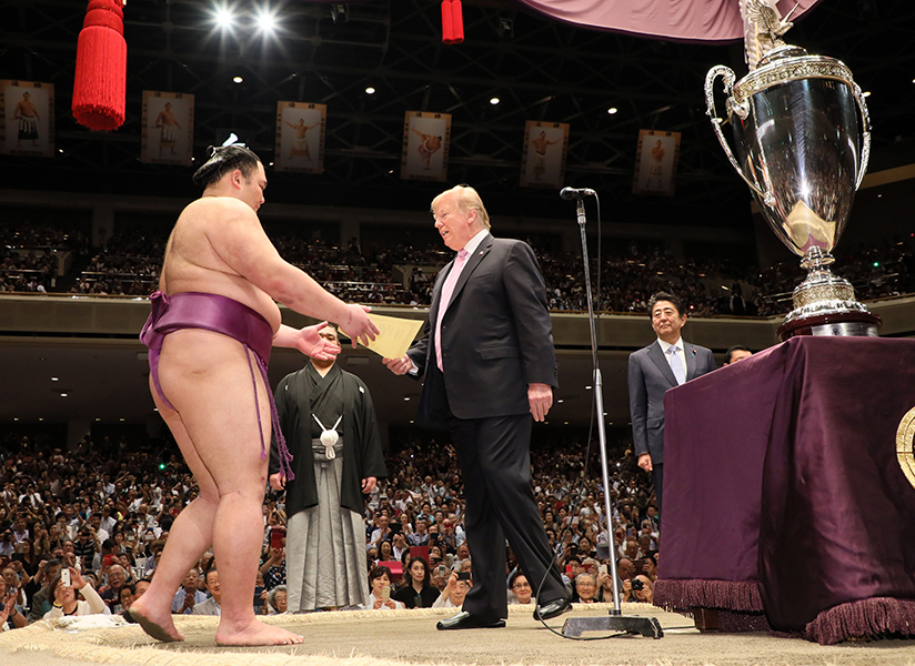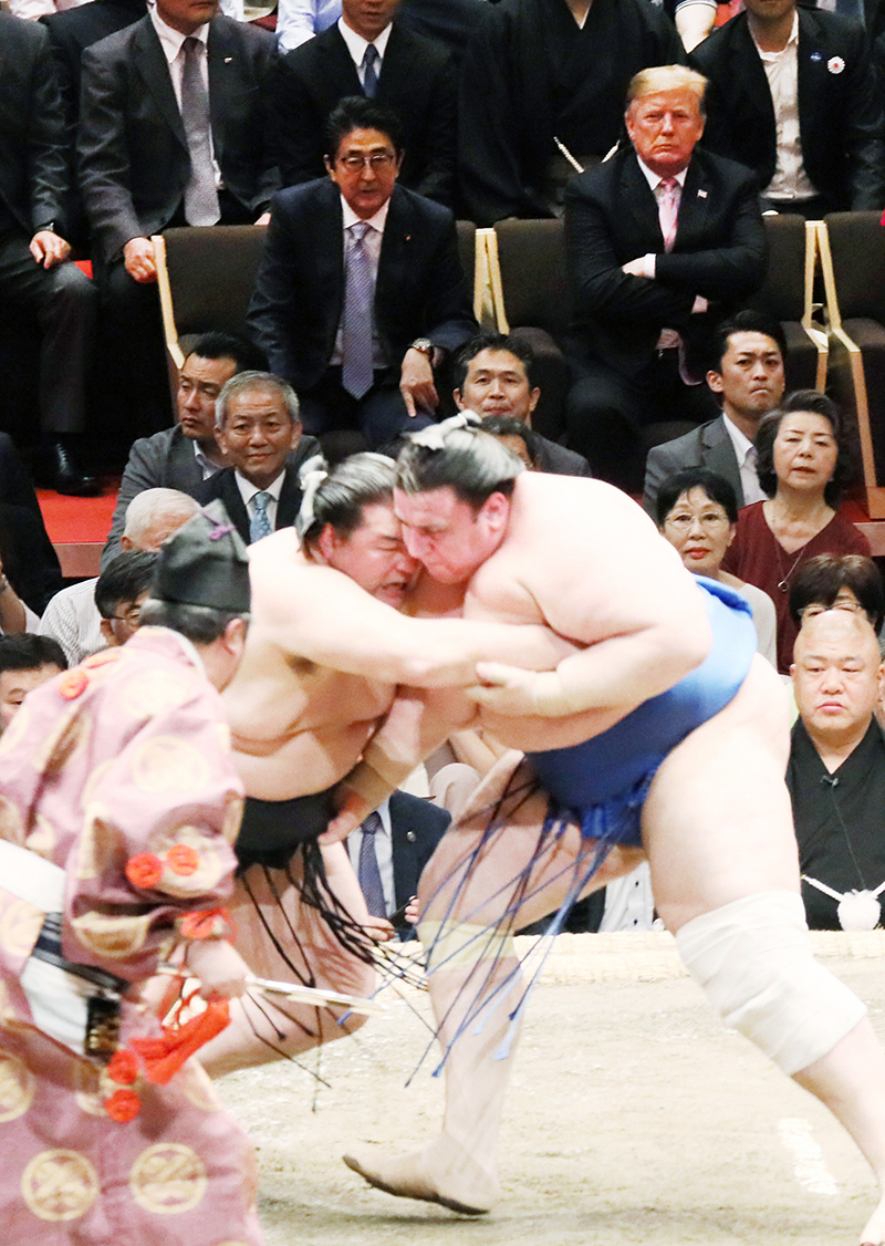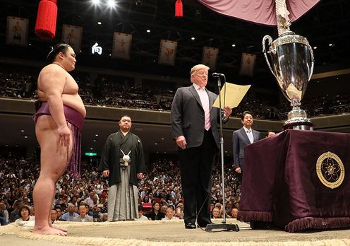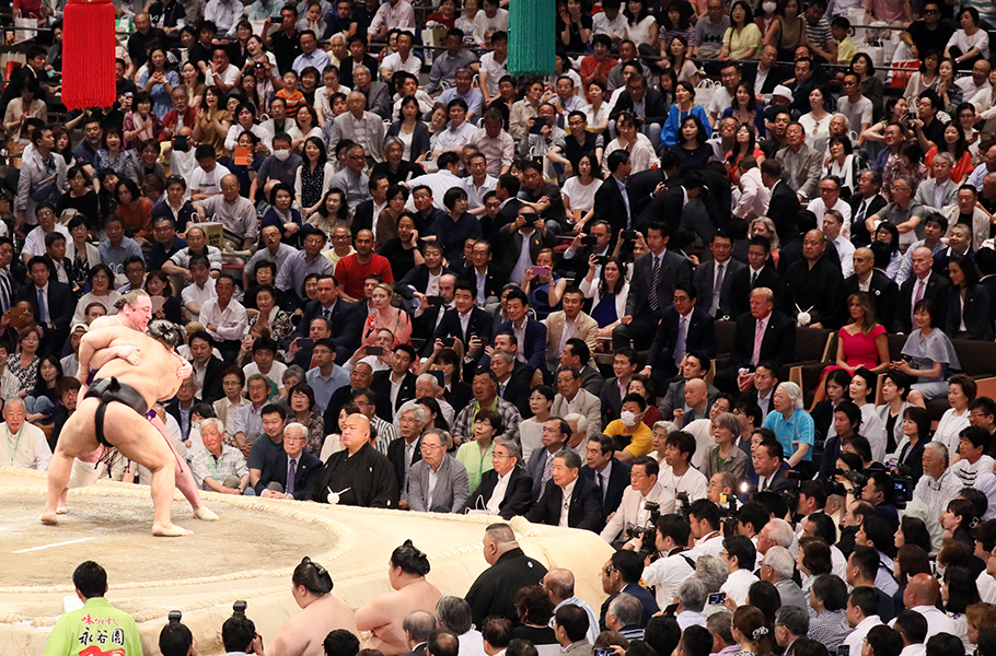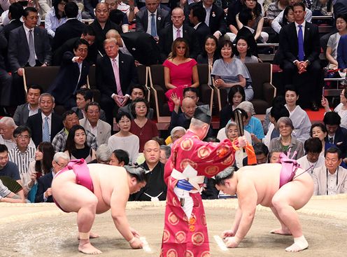 首页 > 总理动向 > 2019年 5月 > 安倍总理夫妇及美国总统特朗普夫妇观看大相扑比赛