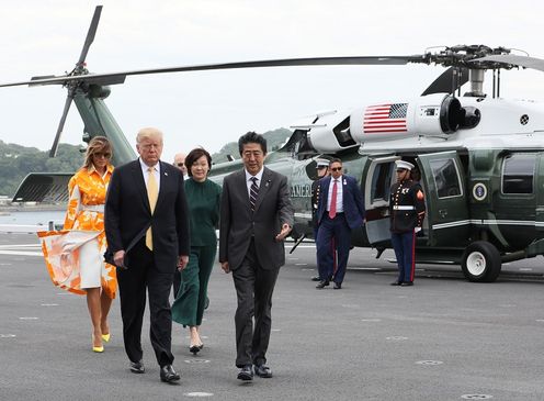 日美两国首脑夫妇访问“加贺”号护卫舰