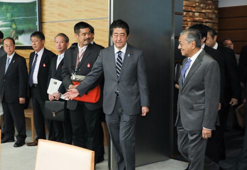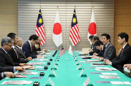 安倍总理在总理大臣官邸与马来西亚总理马哈蒂尔・宾・穆罕默德举行了首脑会谈。