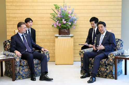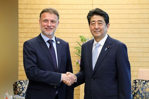 安倍总理在总理大臣官邸接受了克罗地亚共和国议会议长戈尔丹・扬德罗科维奇的拜会。
