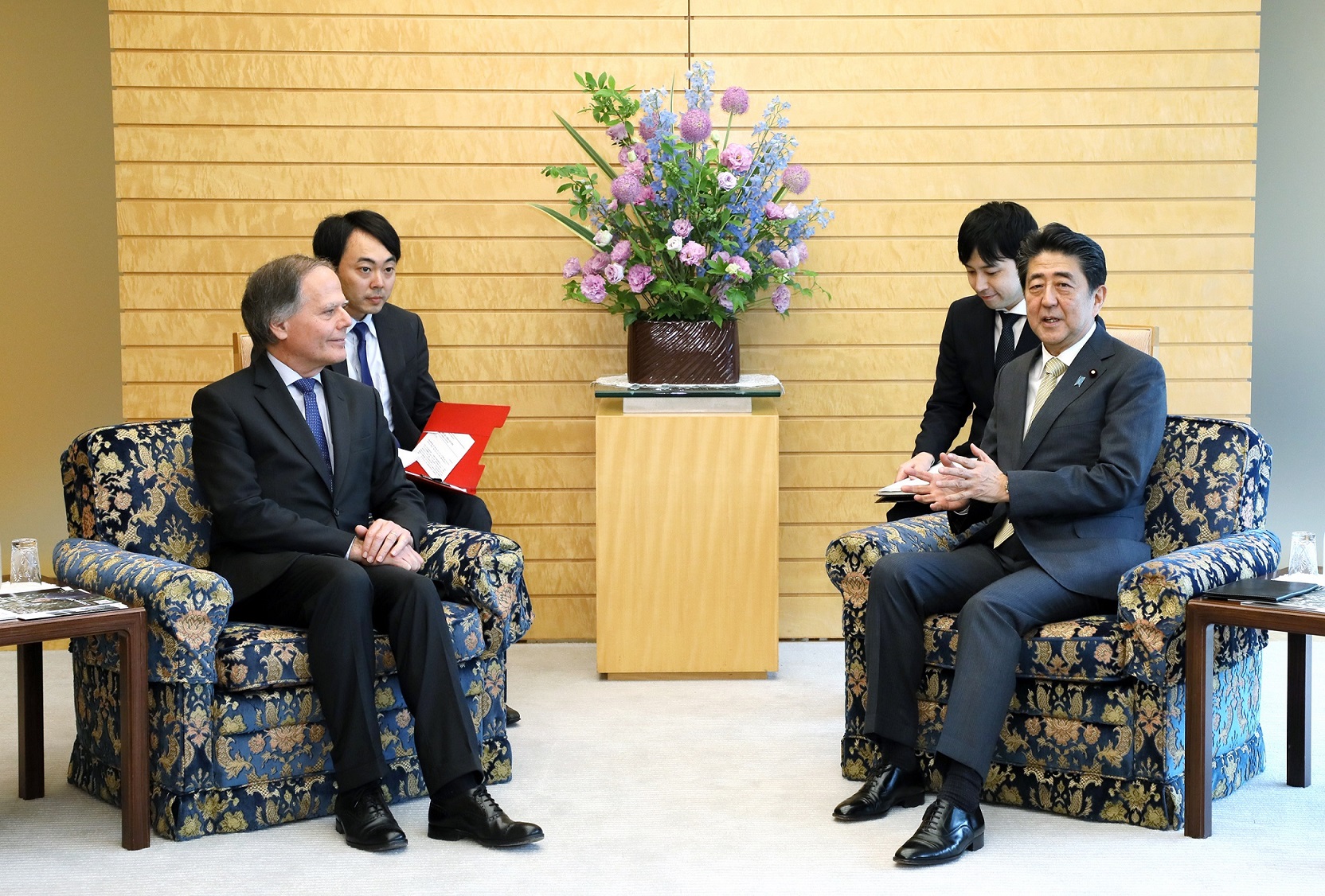 安倍总理在总理大臣官邸接受了意大利共和国外交与国际合作部长恩佐・莫阿韦罗・米拉内西的拜会。