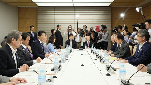 安倍总理在总理大臣官邸出席了令和元(2019)年度第1次中央与地方协商会议。