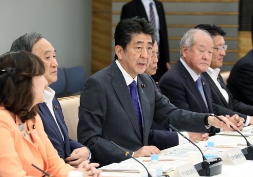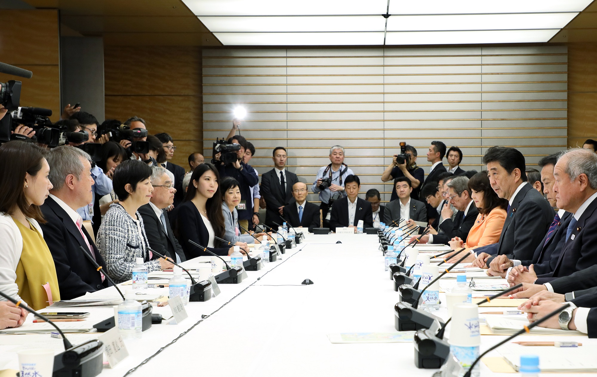 安倍总理在总理大臣官邸召开了第19次城镇・居民・工作创生会议。