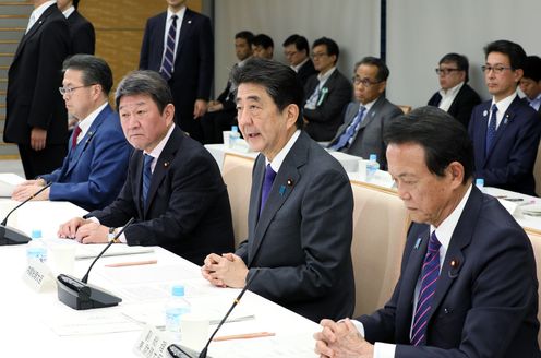 安倍总理在总理大臣官邸召开了令和元(2019)年第3次经济财政咨询会议。
