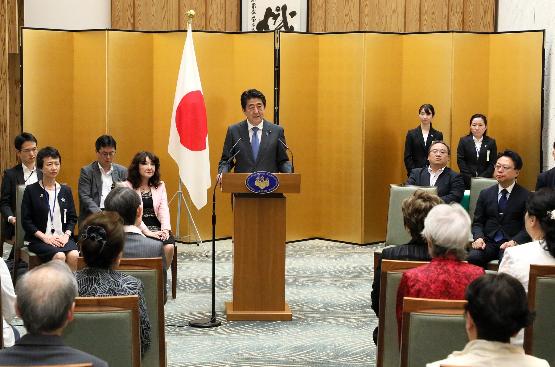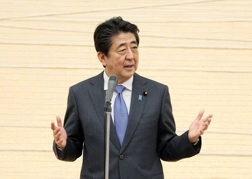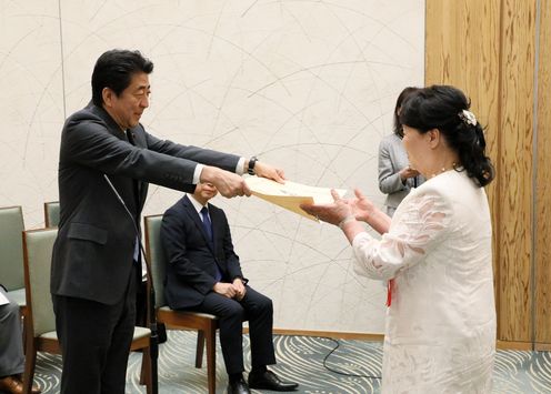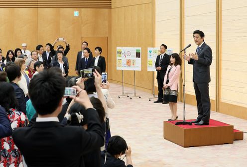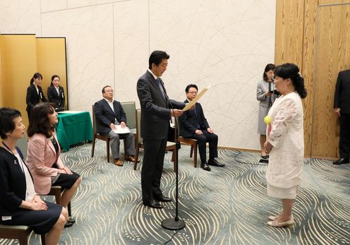安倍总理出席了在总理大臣官邸举行的建设男女共同参与社会相关表彰仪式及有关男女共同参与的恳谈会。