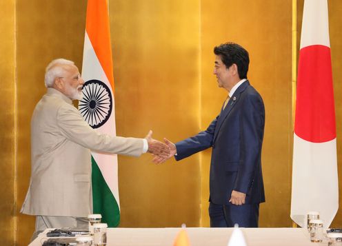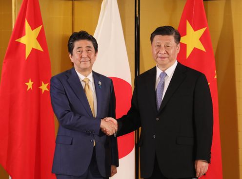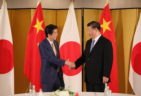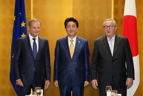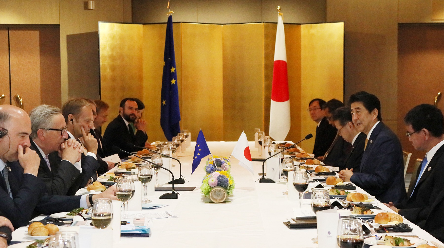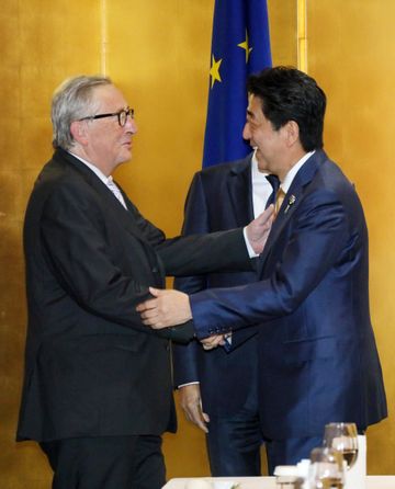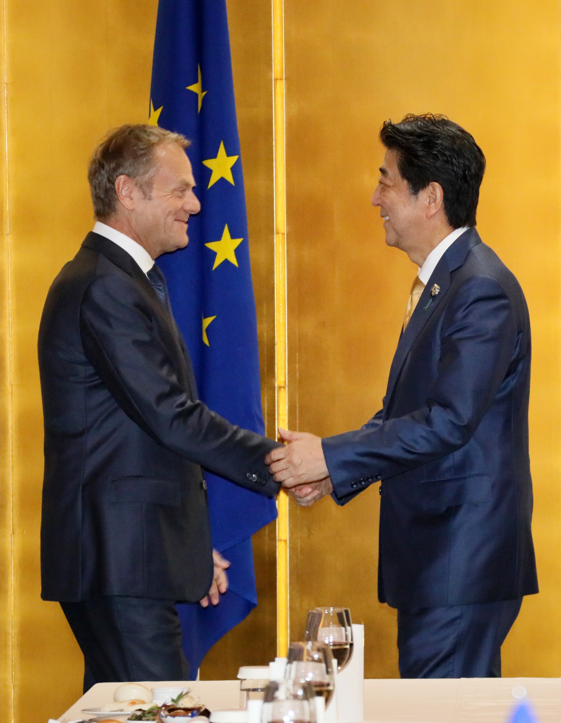 2019年6月27日,安倍总理为了举办G20大阪峰会访问了大阪府大阪市。总理与欧盟的欧洲理事会主席唐纳德・图斯克及欧盟委员会主席让-克洛德・容克举行了会谈(工作午餐),之后,与塞内加尔共和国总统马基・萨勒进行了站立交谈。