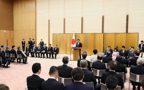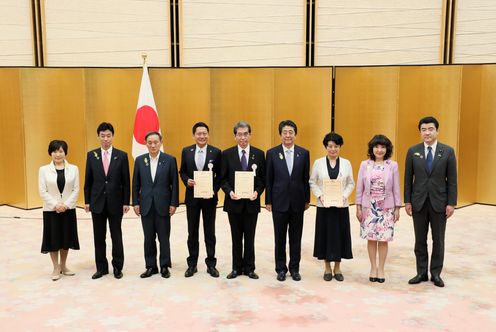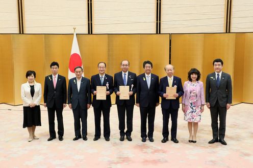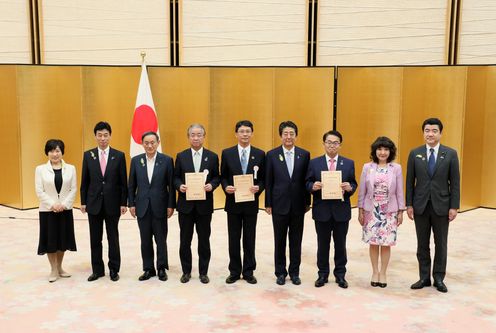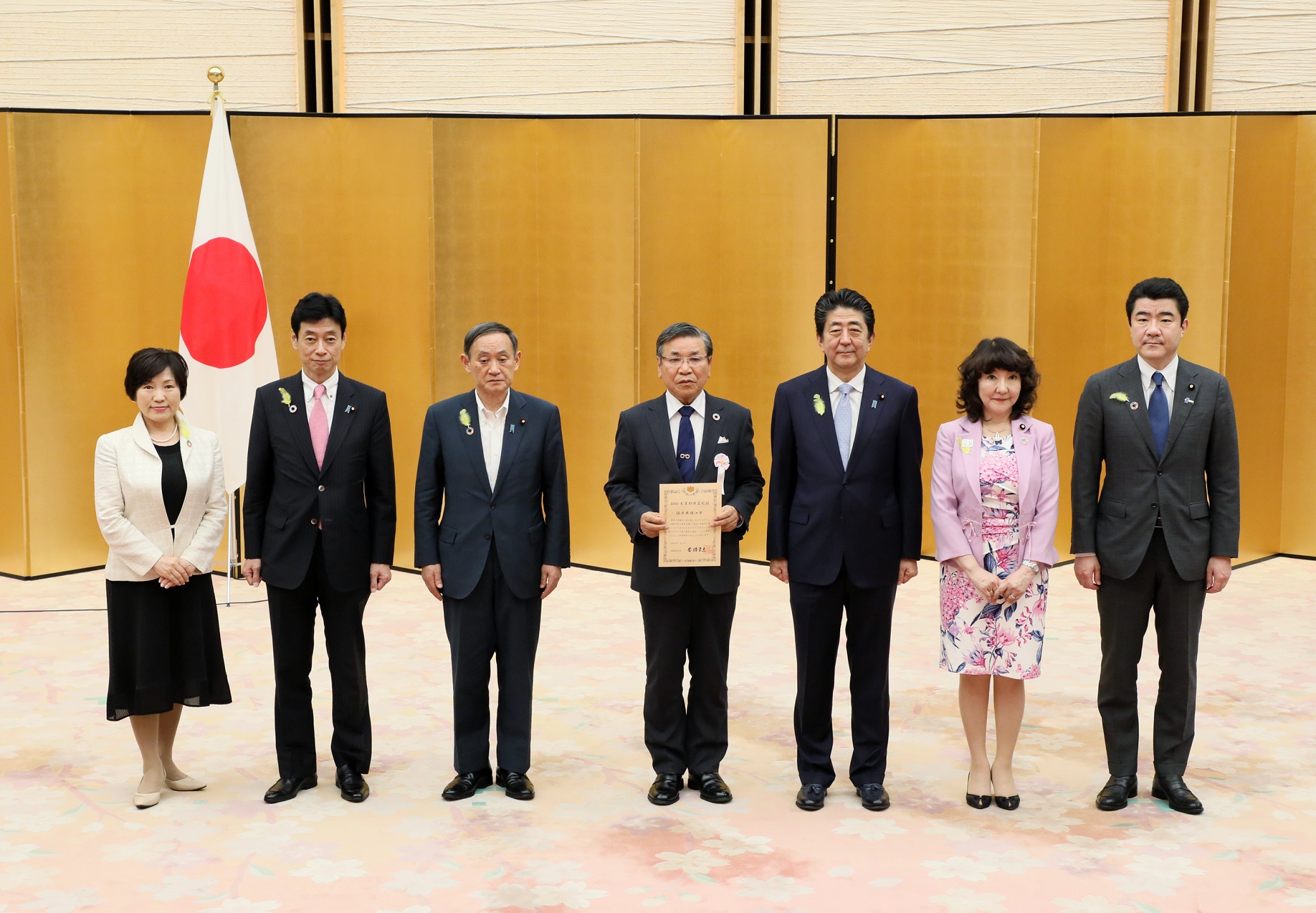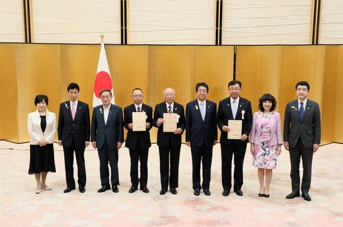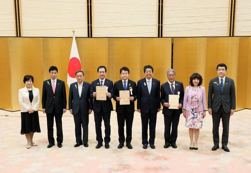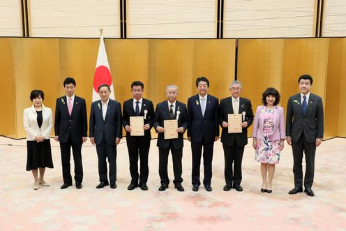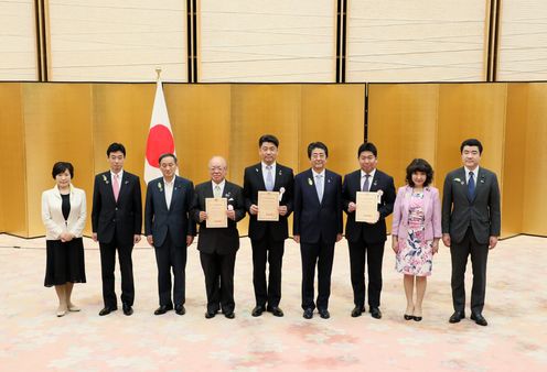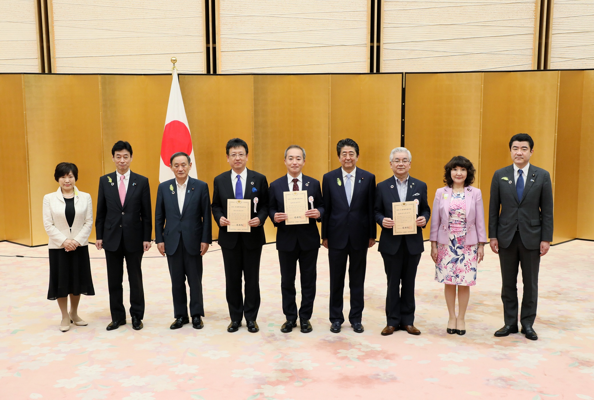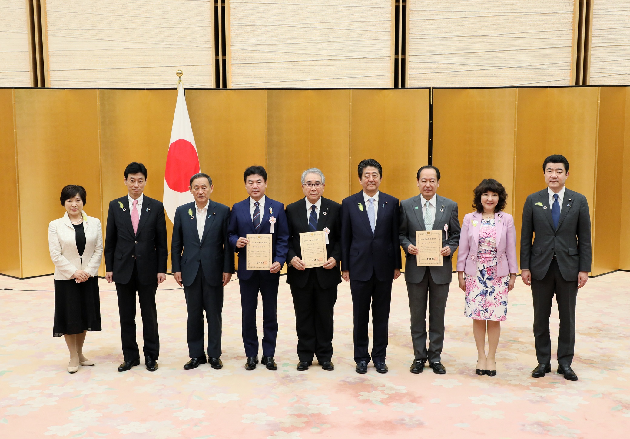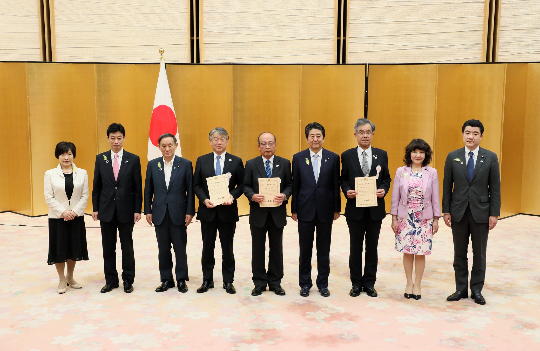 安倍总理在总理大臣官邸举办了2019年度“可持续发展目标(SDGs)未来城市”选定证书颁发仪式。