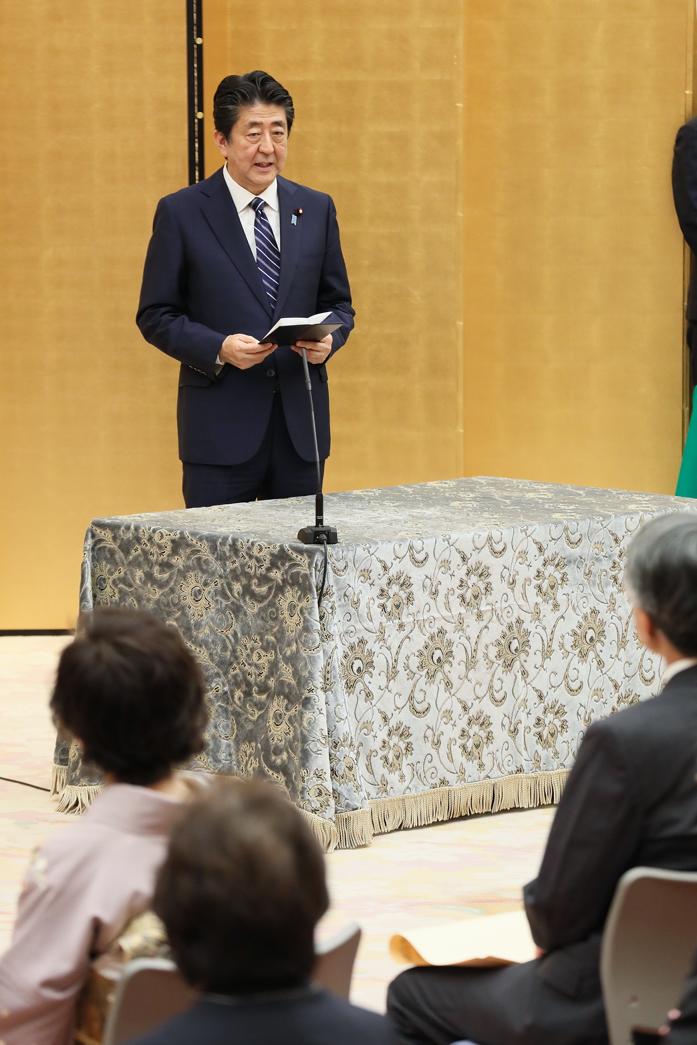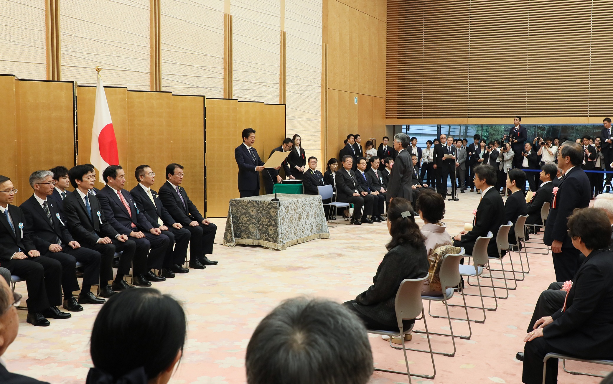 安倍总理在总理大臣官邸出席了2019年安全功劳者内阁总理大臣表彰仪式。