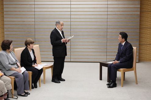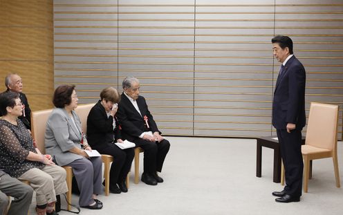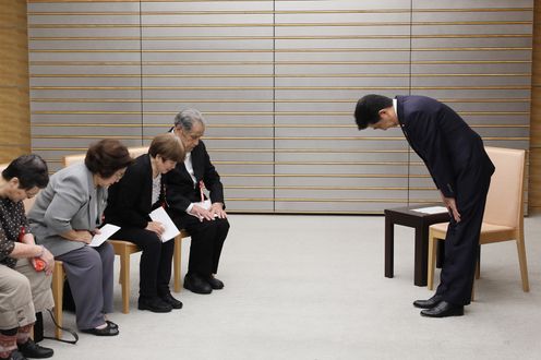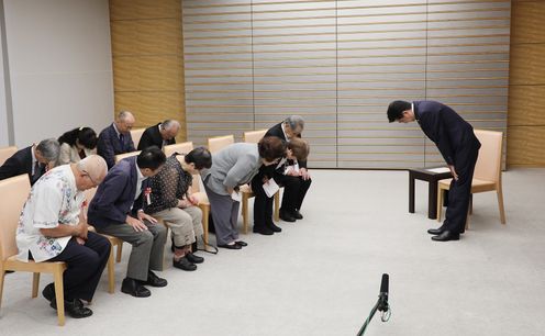 安倍总理在总理大臣官邸与麻风病患者家属诉讼原告团进行了会面。