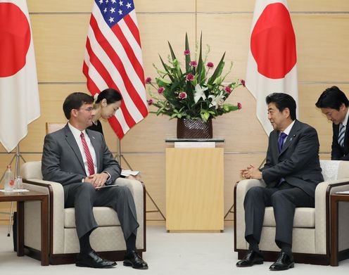 安倍总理在总理大臣官邸接受了美利坚合众国国防部长马克・埃斯珀的拜会。